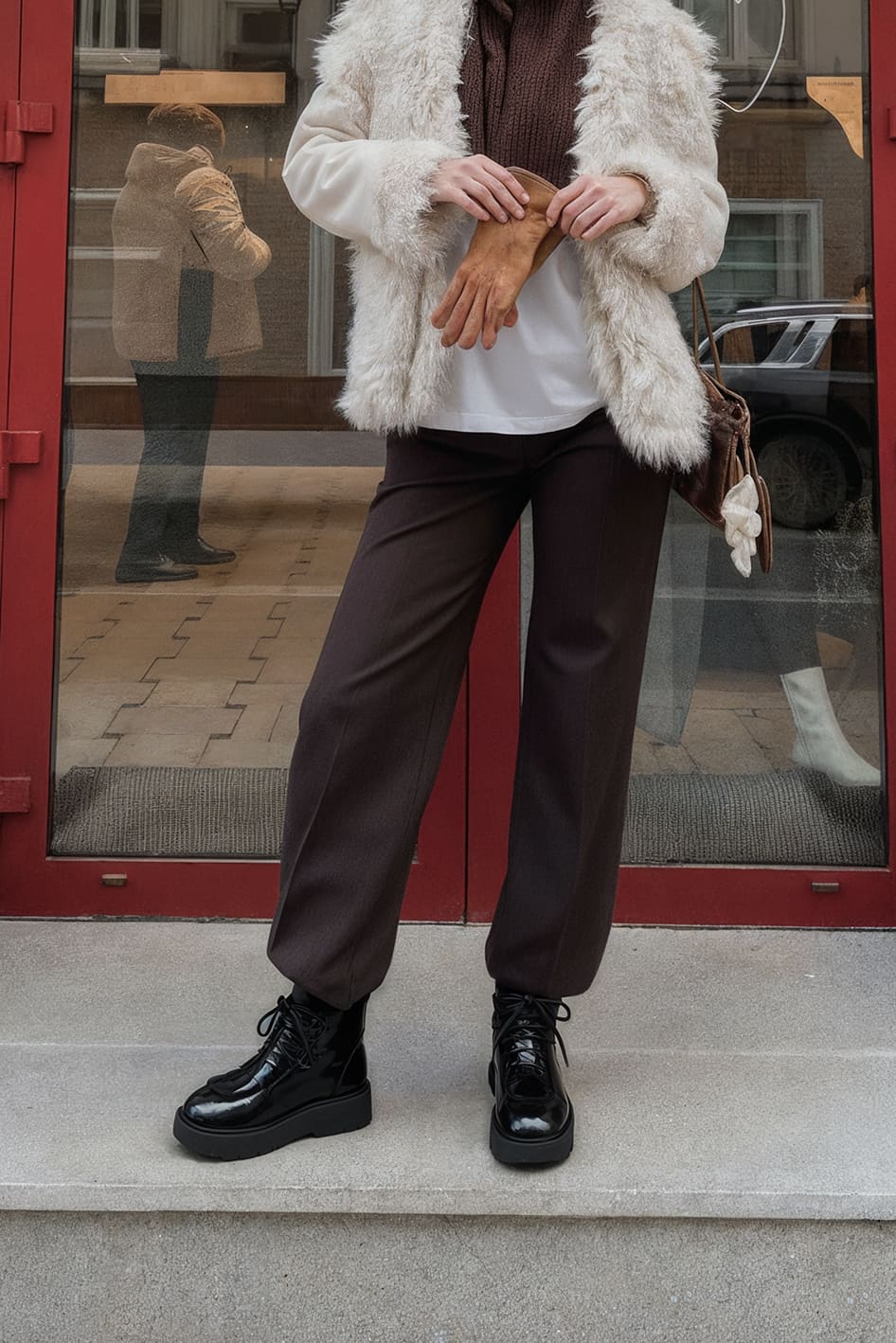 Современные угги на меховой подкладке станут незаменимой базовой зимней парой - они прекрасно сохряняют тепло, удобно надеваются и комфортно сидят на ноге. Лаковая кожа чёрного цвета и шнуровка придают модели нотку утончённости, а благодаря жёсткой полимерной платформе модель будет устойчива даже на льду. Чтобы выбрать наиболее комфортную модель, соответствующую вашим анатомическим особенностям, следует учесть полноту модели и характеристики стопы. Более подробную информацию по выбору размера и об особенностях модели предоставит наш менеджер.