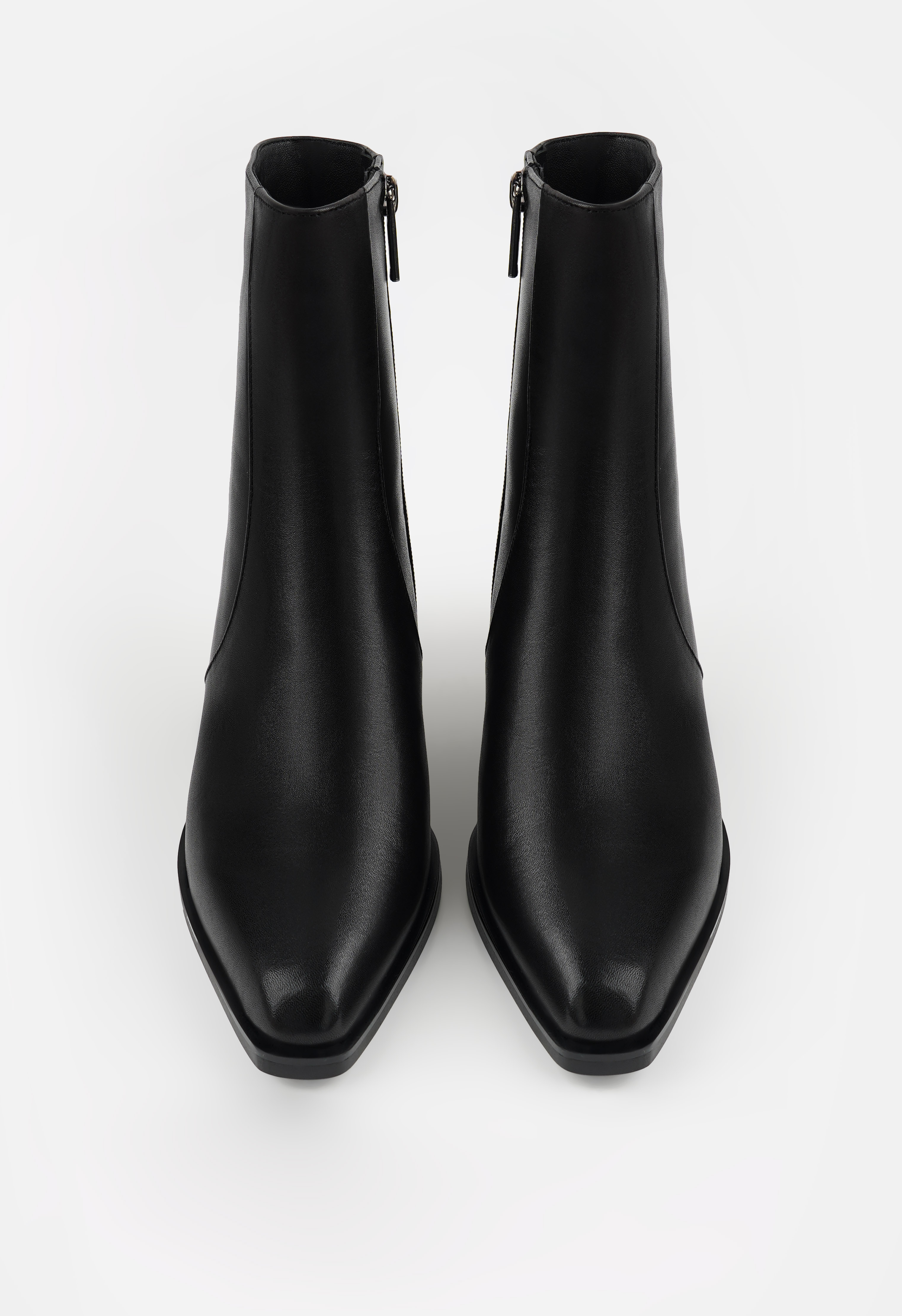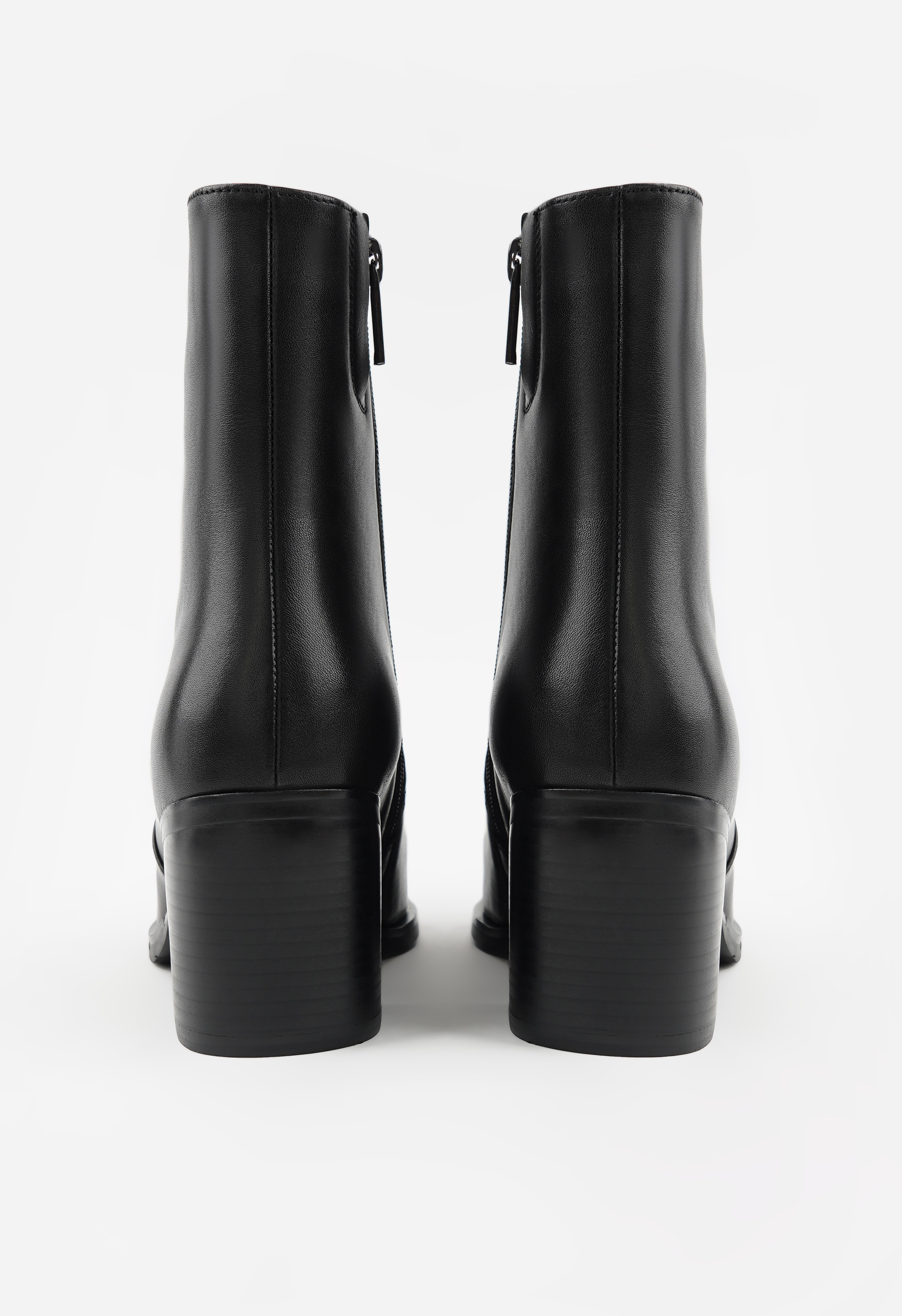 Ботильоны из натуральной кожи черного цвета с утеплением из натурального меха – это сочетание элегантного стиля и максимального комфорта для холодного сезона. Гибкая подошва и широкий каблук обеспечивают легкость и устойчивость при ходьбе, а квадратный мысок дарит удобную посадку и современный акцент образу. Молния и металлическая фурнитура добавляют практичности, делая модель универсальной для повседневной жизни и особых случаев.