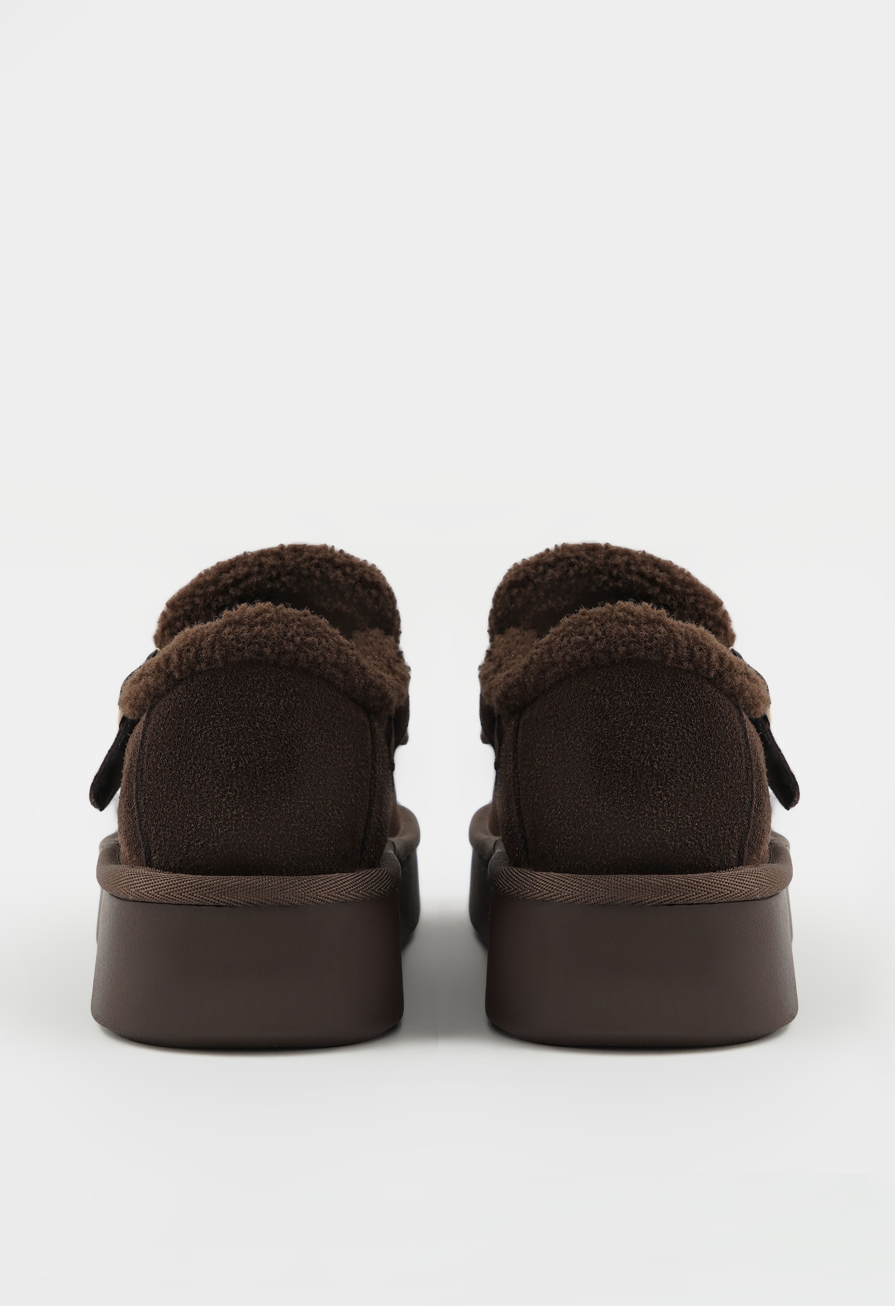 Атмосферные коричневые полуботинки из мягчайшей натуральной замши с выразительной платформой и аккуратным округлым мыском создают стильный безупречный образ для холодного сезона. Модель с жесткой подошвой обеспечивает отличную устойчивость, а роскошная подкладка из натуральной шерсти надежно согревает в морозы. Элегантная бронзовая фурнитура подчеркивает статусность модели, превращая эти полуботинки в универсальную пару, которая одинаково эффектно дополнит и уютный свитер с джинсами, и утепленное пальто с брюками, даря неповторимое ощущение комфорта и уверенности в городской среде.