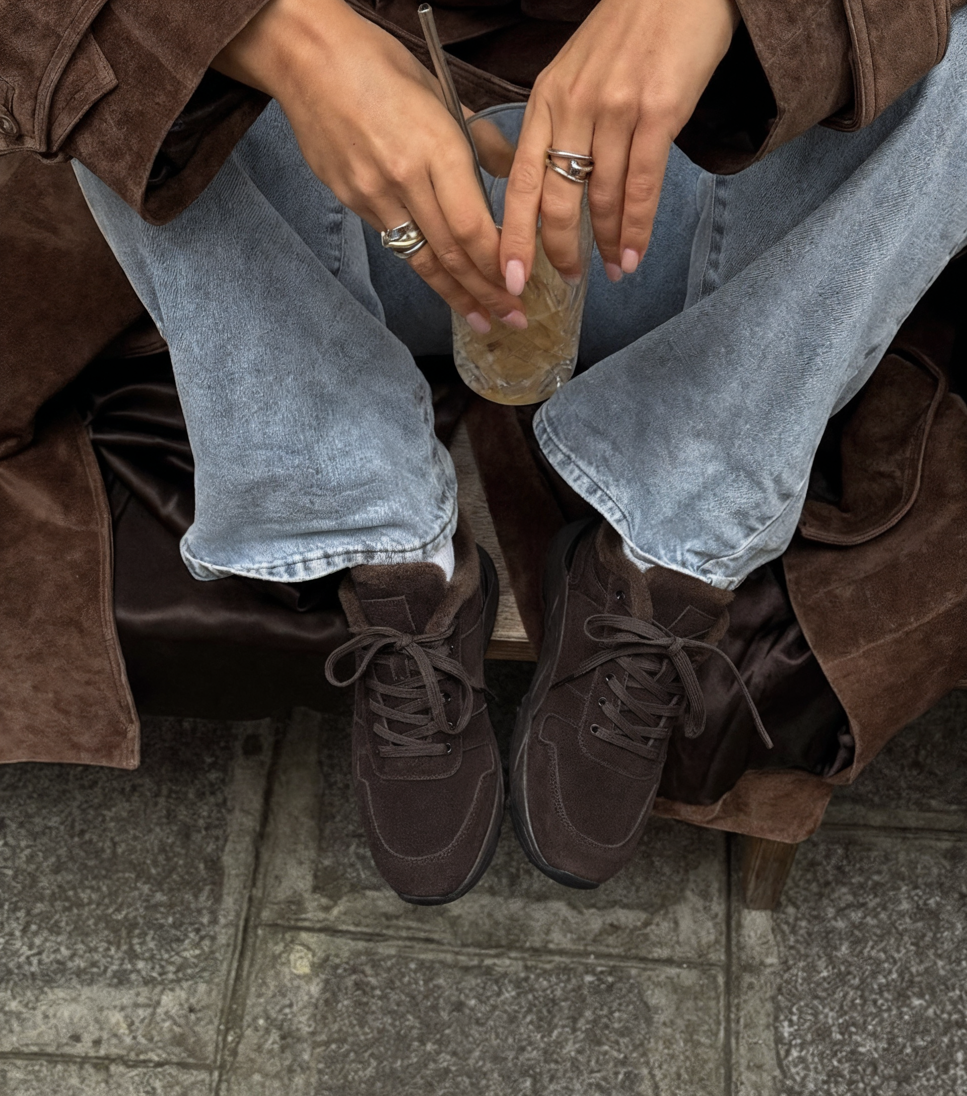 Эти кроссовки из натуральной замши в коричневом цвете – идеальный союз стиля и комфорта. Мягкая внутренняя отделка из натуральной шерсти заботится о ваших ногах, а жесткая подошва и устойчивая платформа обеспечивают уверенную походку каждый день. Округлый мысок и аккуратная шнуровка с металлической фурнитурой придают модели современный и утончённый вид, делая её универсальной для прогулок, работы или встреч с друзьями. Эта модель не только удобна, но и легко вписывается в любой образ, добавляя нотку элегантности и уверенности вашей повседневной жизни.