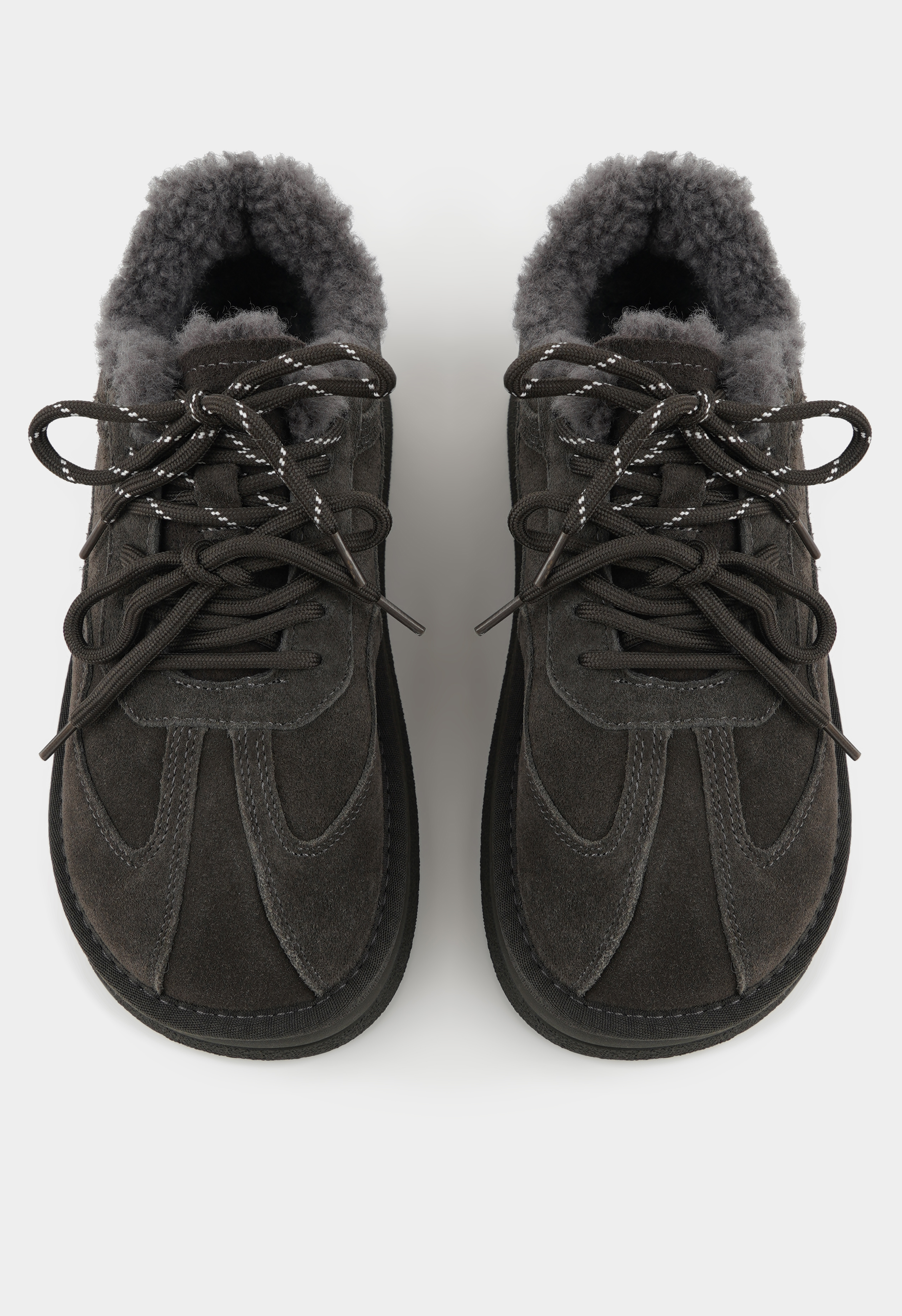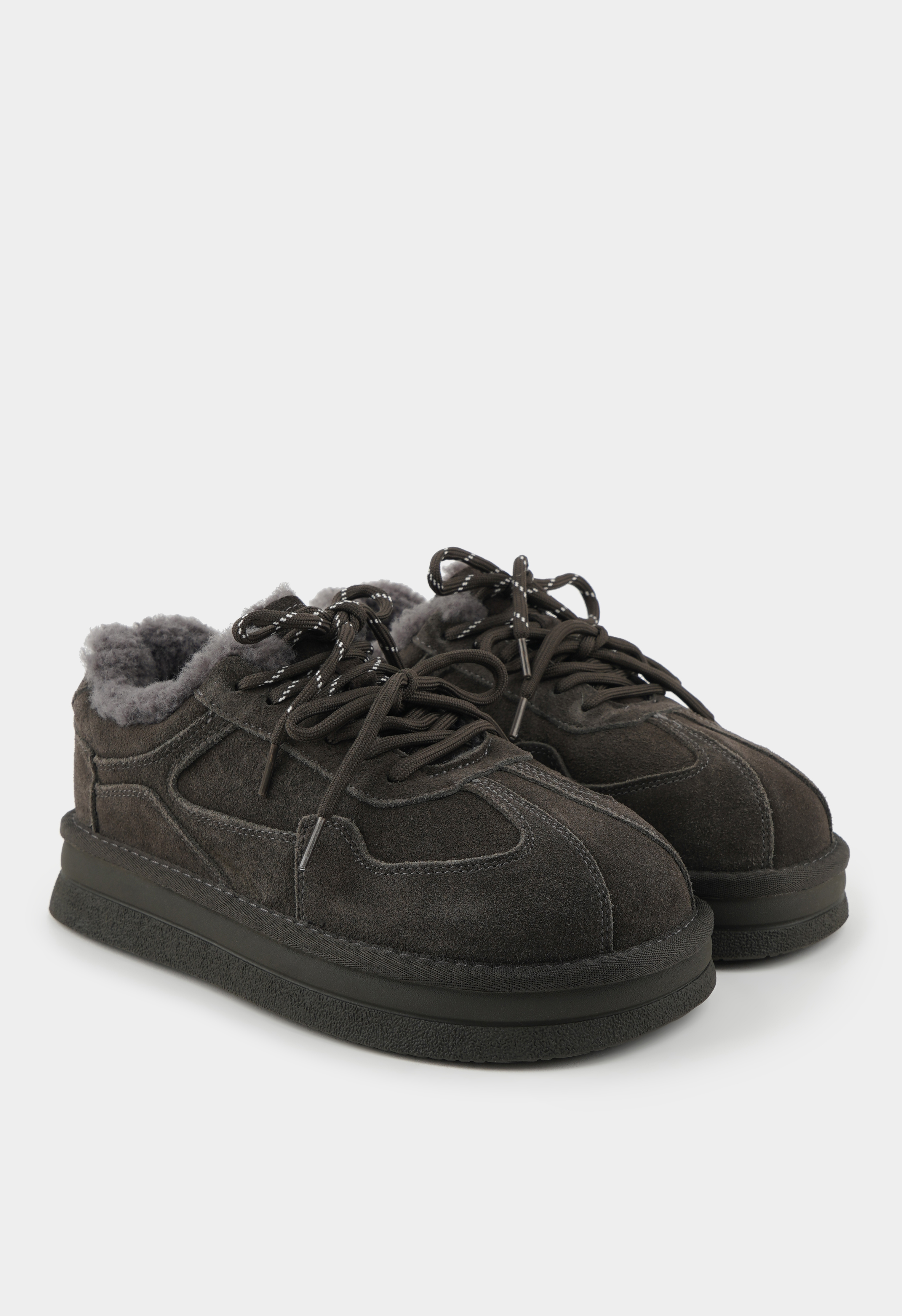 Актуальные полуботинки серого цвета станут стильным акцентом вашего зимнего гардероба, сочетая практичность и элегантность. Модель выполнена из мягкой натуральной замши, внутренняя отделка из натуральной шерсти обеспечивает комфорт и тепло в любую погоду. Жесткая подошва гарантирует устойчивость на разных поверхностях, округлый мысок делает обувь удобной для повседневной носки, а бронзовая фурнитура и аккуратная шнуровка добавляют утонченные детали в дизайн. Благодаря платформе шаг остается уверенным и легким, а образ – современным и гармоничным.