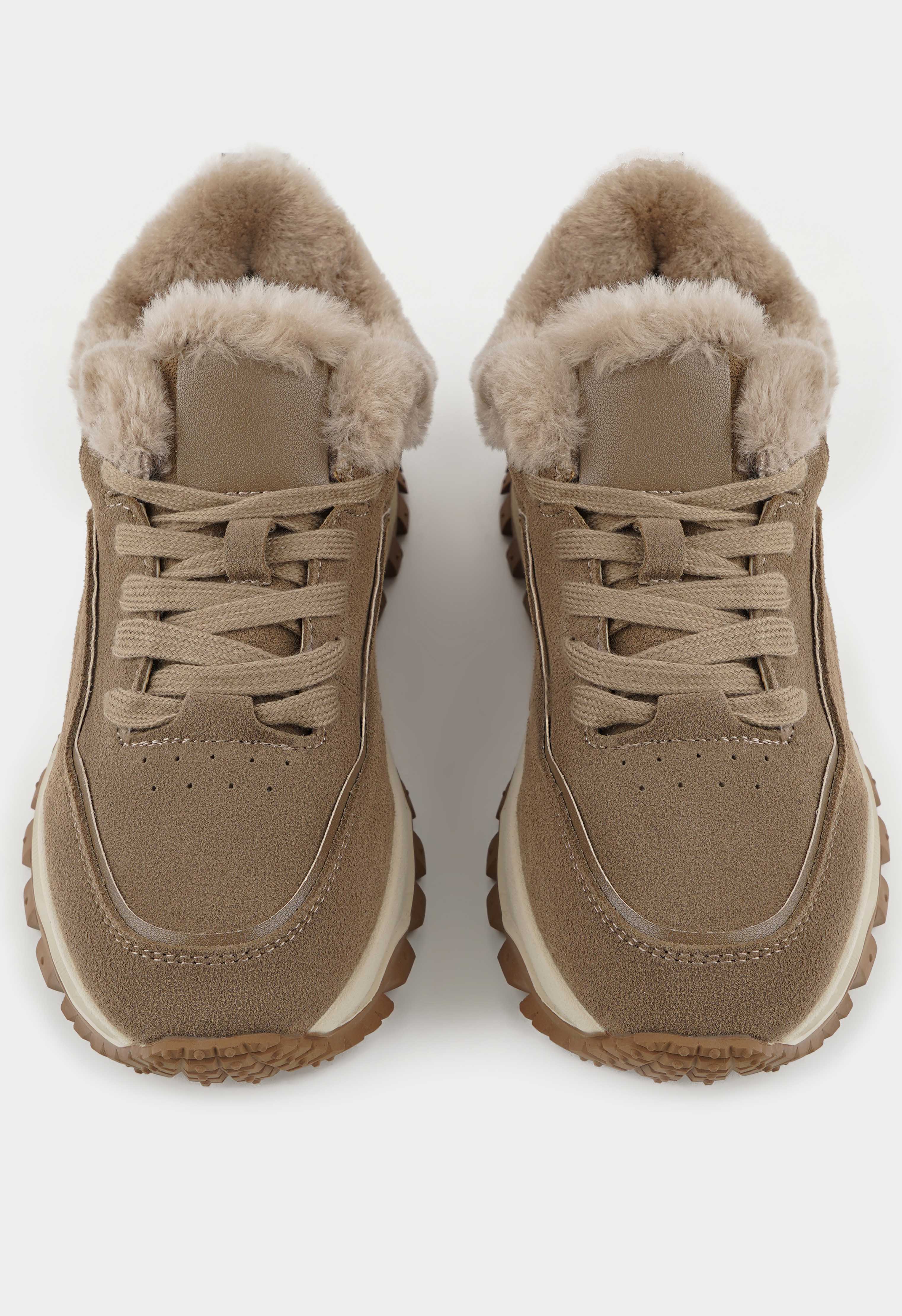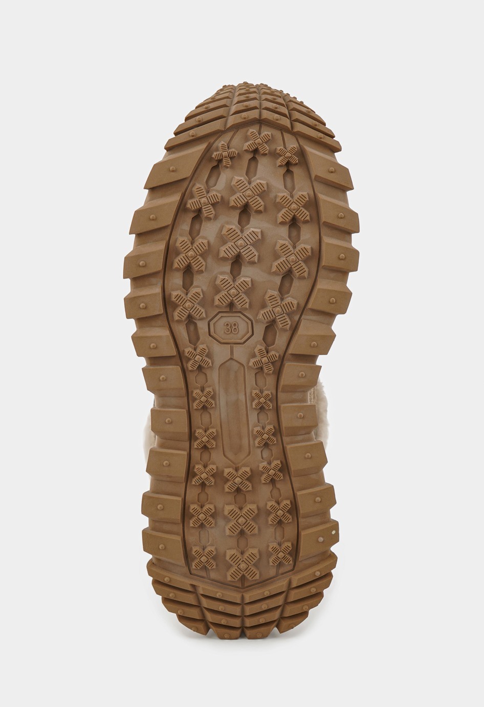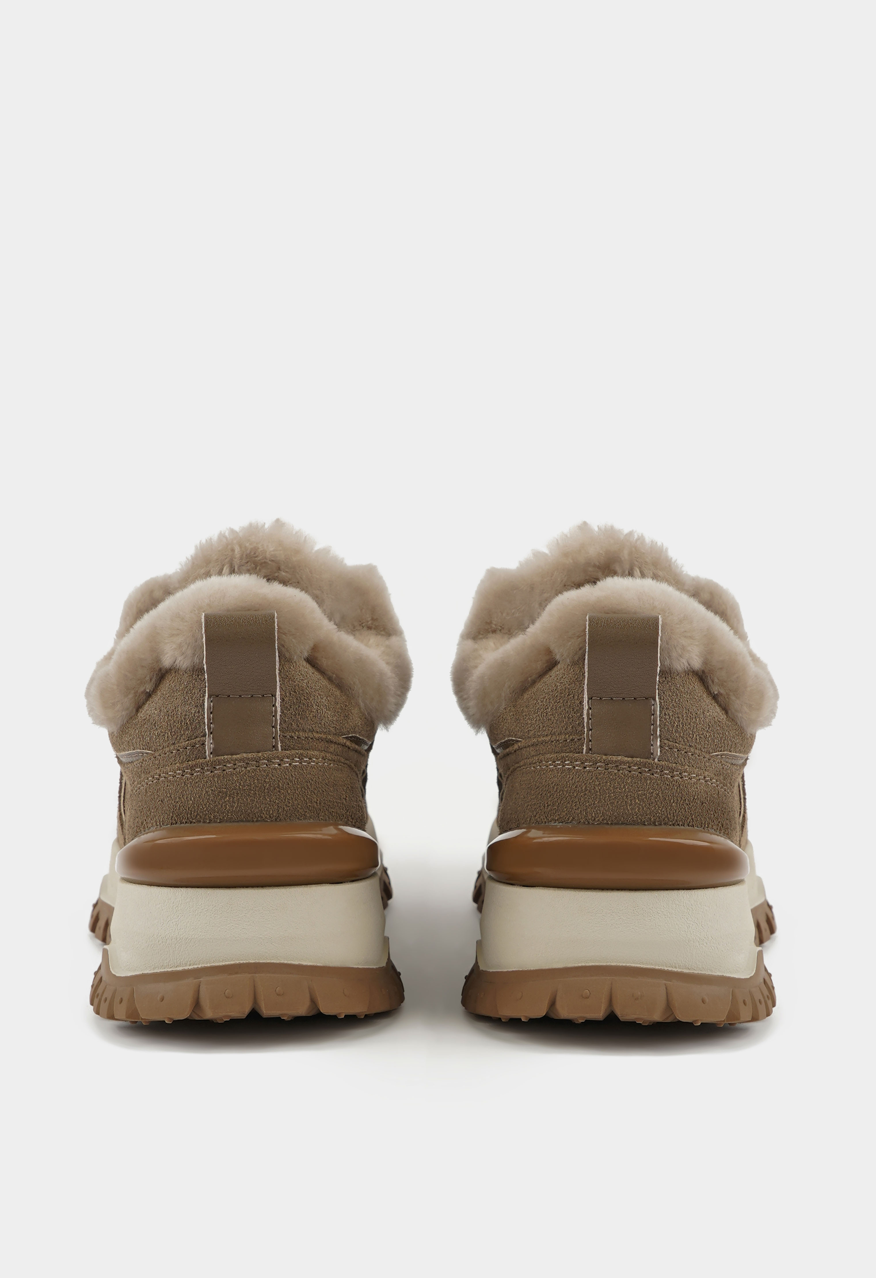 Базовые ботинки бежевого цвета – идеальный выбор для тех, кто ценит комфорт и лаконичный стиль в повседневной обуви. Натуральная замша придает модели мягкость и благородство, а внутренняя отделка из натуральной шерсти дарит тепло и уют в холодные зимние дни. Жесткая подошва обеспечивает устойчивость и надежность при ходьбе, округлый мысок делает обувь удобной, в то время как шнуровка позволяет легко подстроить посадку под ногу. Платформа добавляет легкий визуальный акцент и делает шаг уверенным, превращая эту модель в практичное и стильное дополнение к любому гардеробу.