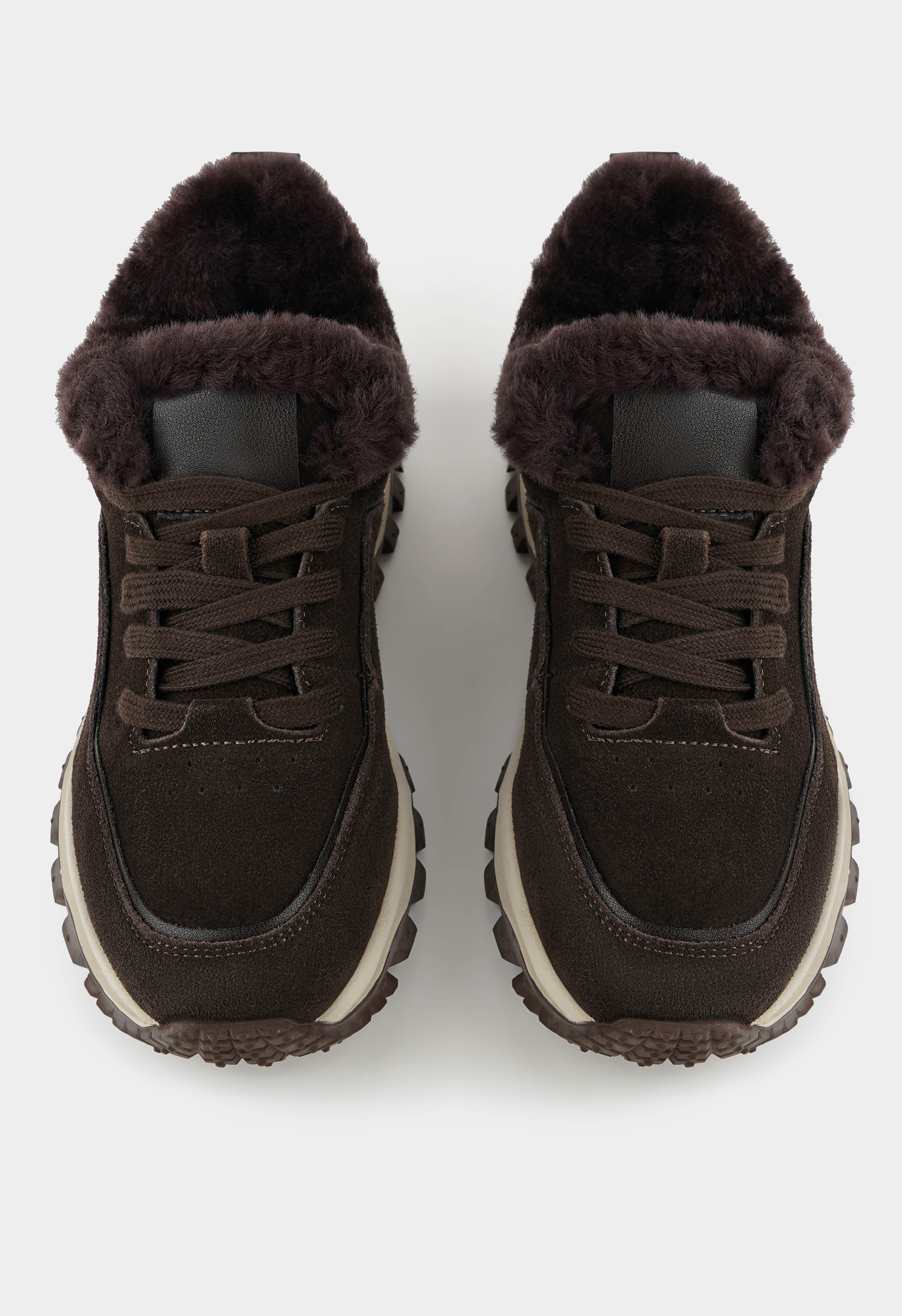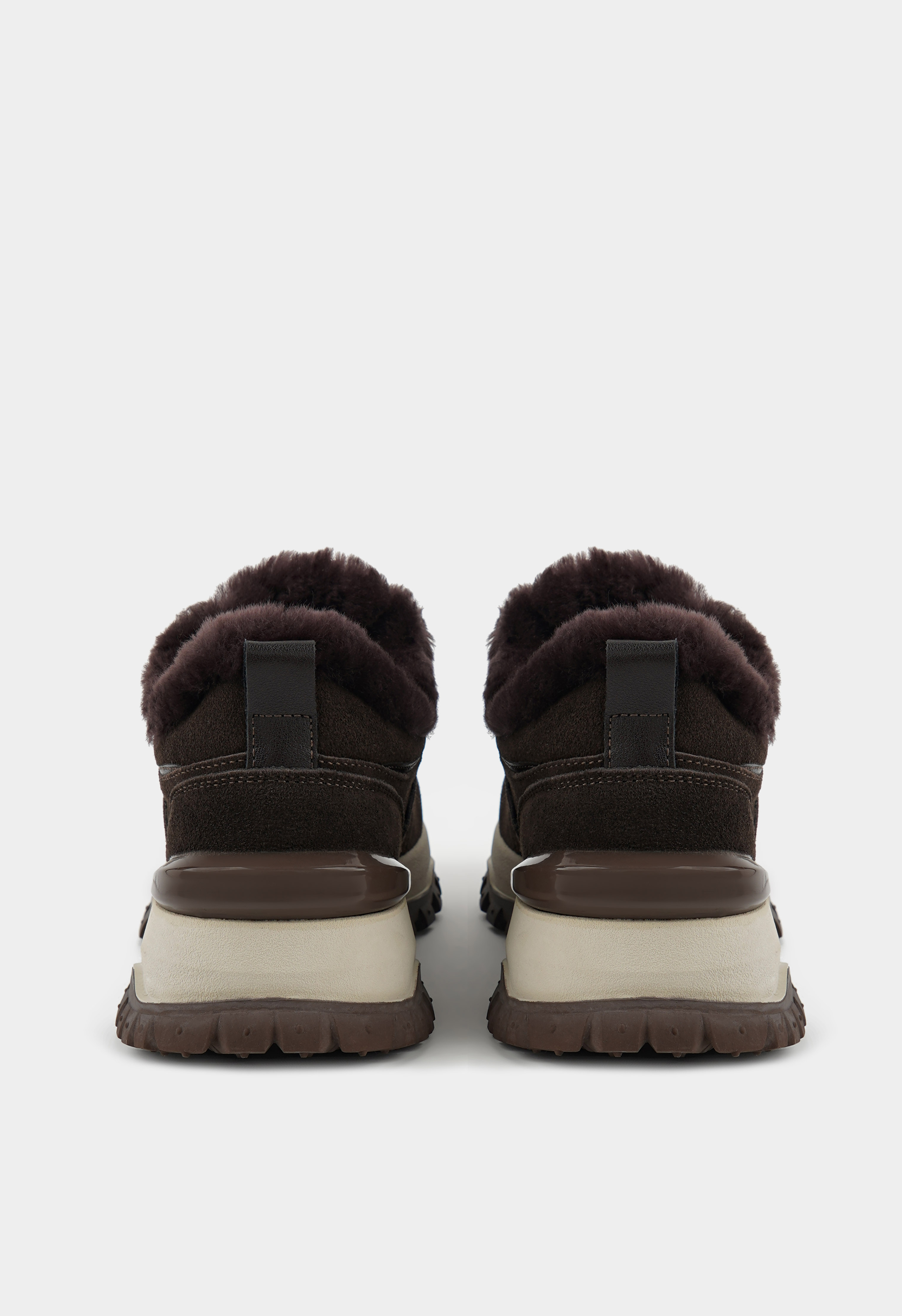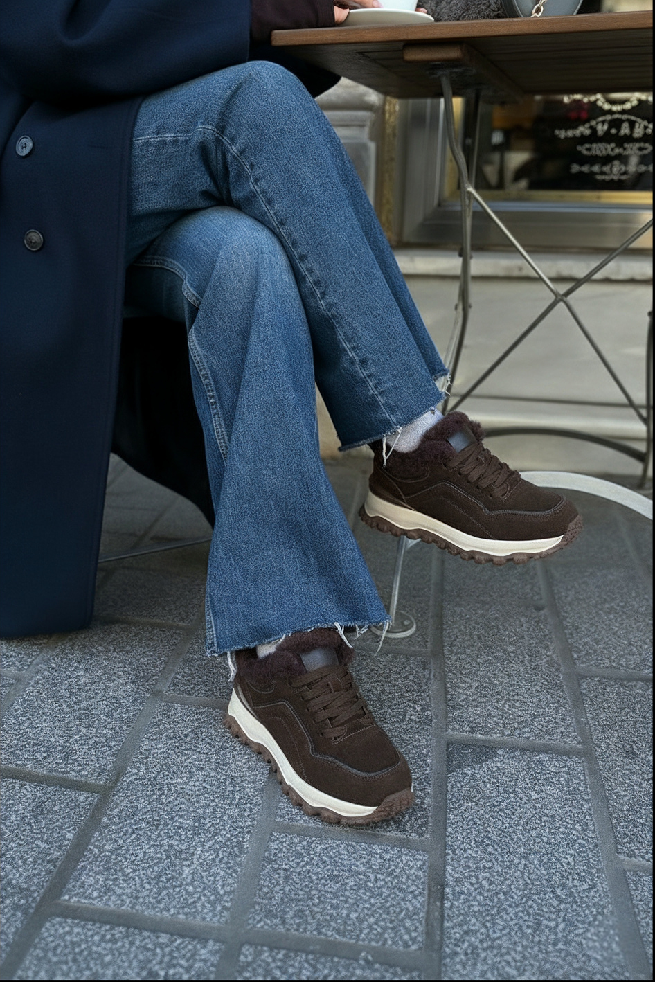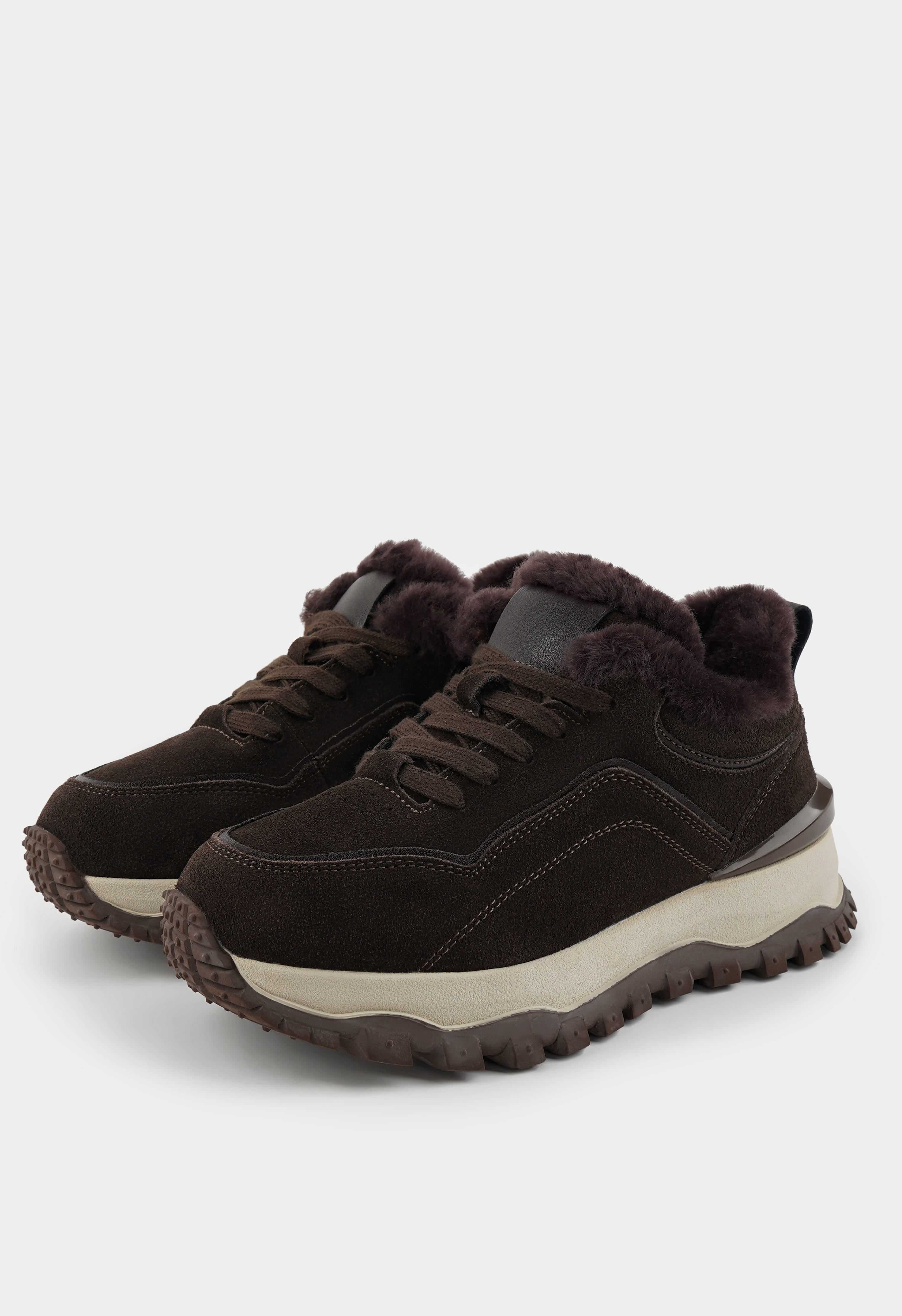 Базовые ботинки коричневого цвета – идеальный выбор для тех, кто ценит комфорт и лаконичный стиль в повседневной обуви. Натуральная замша придает модели мягкость и благородство, а внутренняя отделка из натуральной шерсти дарит тепло и уют в холодные зимние дни. Жесткая подошва обеспечивает устойчивость и надежность при ходьбе, округлый мысок делает обувь удобной, в то время как шнуровка позволяет легко подстроить посадку под ногу. Платформа добавляет легкий визуальный акцент и делает шаг уверенным, превращая эту модель в практичное и стильное дополнение к любому гардеробу.