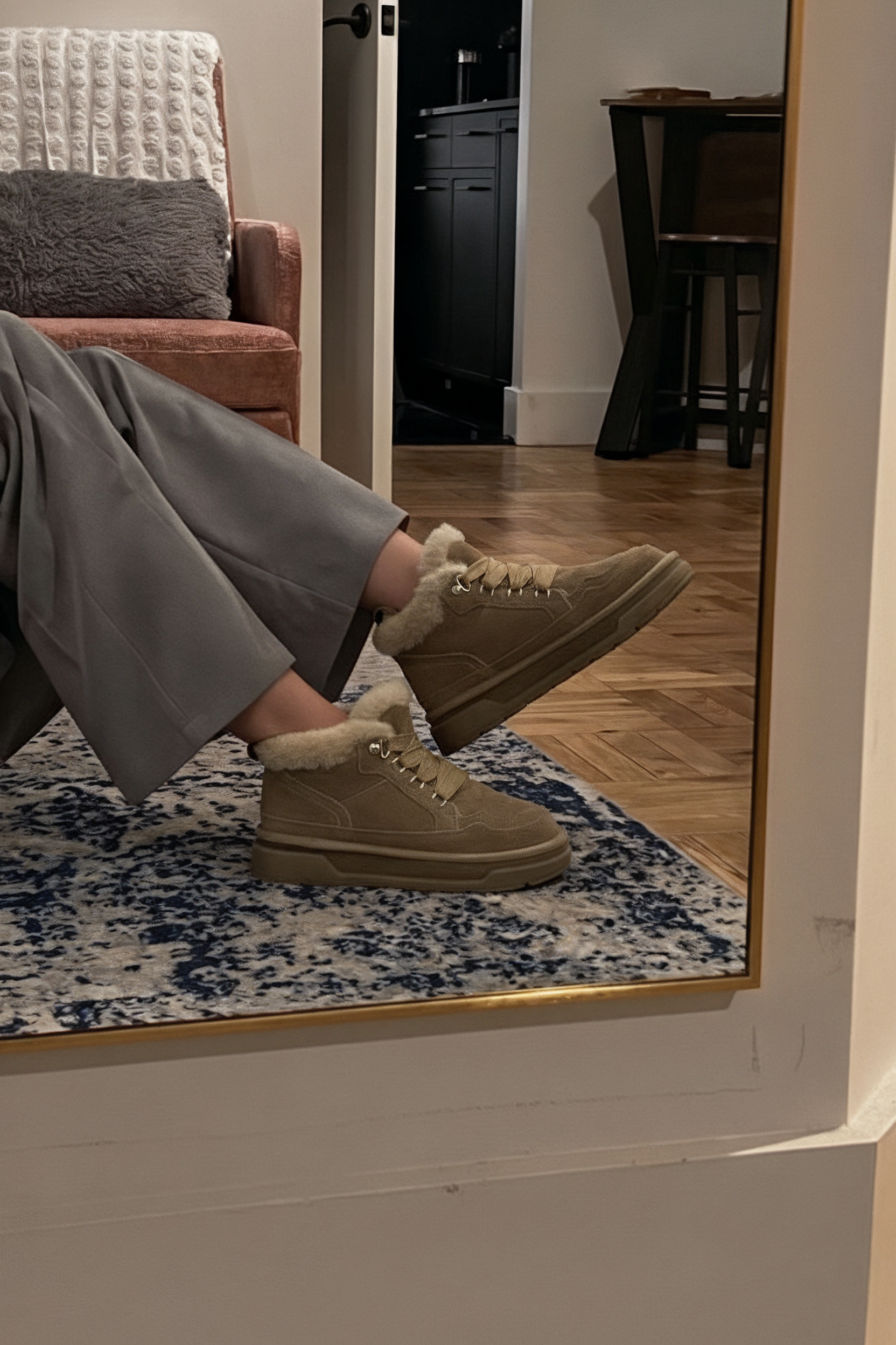 Отличные зимние ботинки: тёплые, удобные и аккуратные. Замша качественная, не лоснится, шерсть внутри плотная.