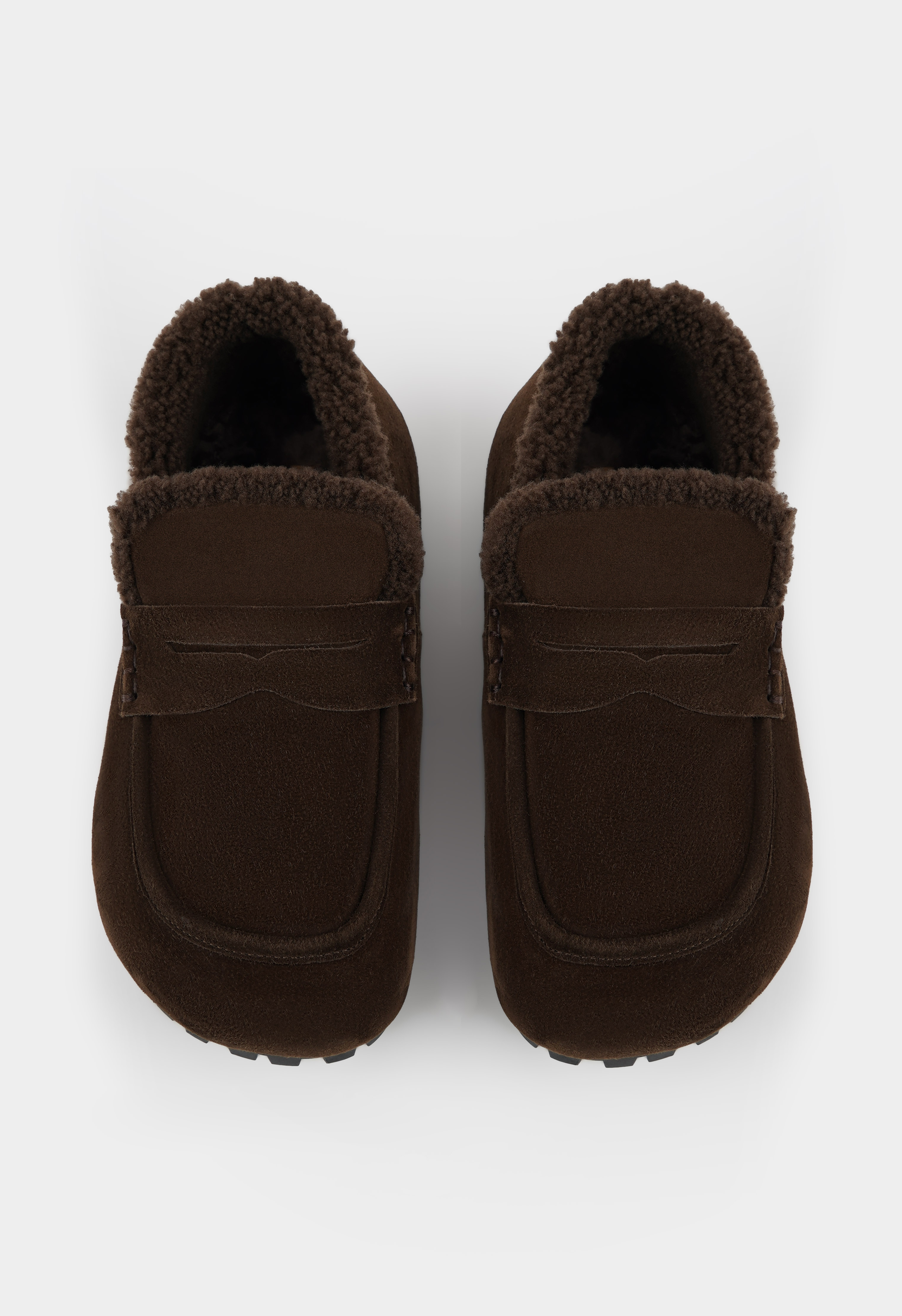 Эти полуботинки с выразительным квадратным мыском, выполненные из благородной коричневой замши, станут вашим спасением в зимние холода. Модель сочетает элегантную графичность форм с практичной функциональностью: жесткая подошва гарантирует устойчивость на скользких поверхностях, а плотная подкладка из натурального меха создает надежную защиту от мороза. Универсальная пара легко интегрируется в городской гардероб, предлагая безупречное сочетание с утепленными брюками, джинсами и удлиненными пальто, где каждая деталь подчеркивает продуманный до мелочей зимний образ.