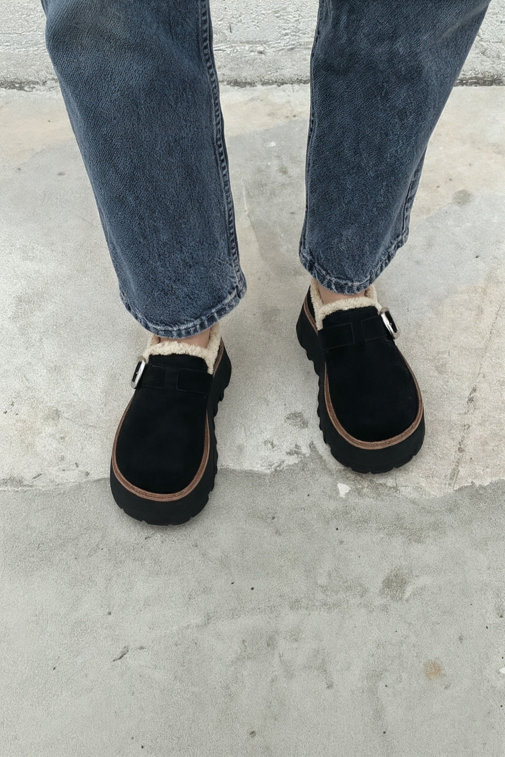 Солидные полуботинки из благородной черной замши с массивной платформой и элегантным округлым мыском создают образ уверенности и стиля. Жесткая подошва обеспечивает беспрекословную устойчивость, а натуральный мех внутри дарит тепло даже в лютые морозы. Серебряная фурнитура и практичные втачные резинки добавляют модели выразительные акценты и комфортную посадку. Идеальная пара для городской зимы, которая безупречно сочетается с грубыми джинсами, утепленными брюками и объемными свитерами, подчеркивая продуманный образ.