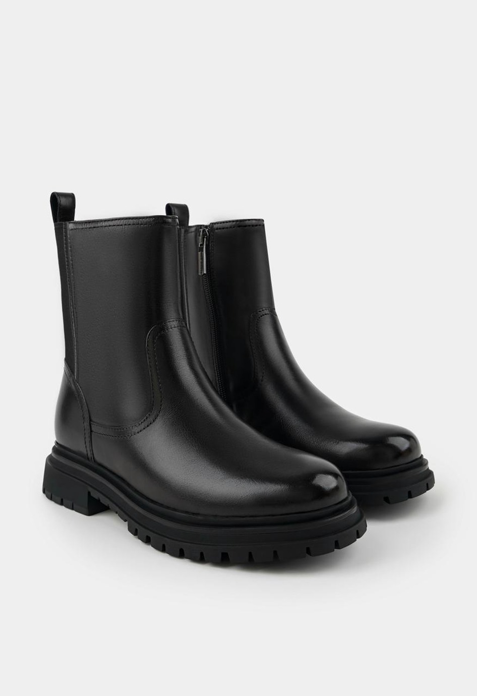 Повседневные ботинки в черном цвете – идеальный выбор для тех, кто ценит сочетание удобства и современного дизайна. Модель выполнена из гладкой натуральной кожи, которая отличается прочностью и благородным блеском, внутренняя отделка представлена мягким натуральным мехом, обеспечивающим комфорт и тепло в холодные дни. Гибкая подошва гарантирует легкость шага, округлый мысок создает естественную посадку, а металлическая фурнитура добавляет стильный акцент. Удобная молния облегчает надевание, в то время как широкий каблук придаёт устойчивость и уверенность в каждом движении.