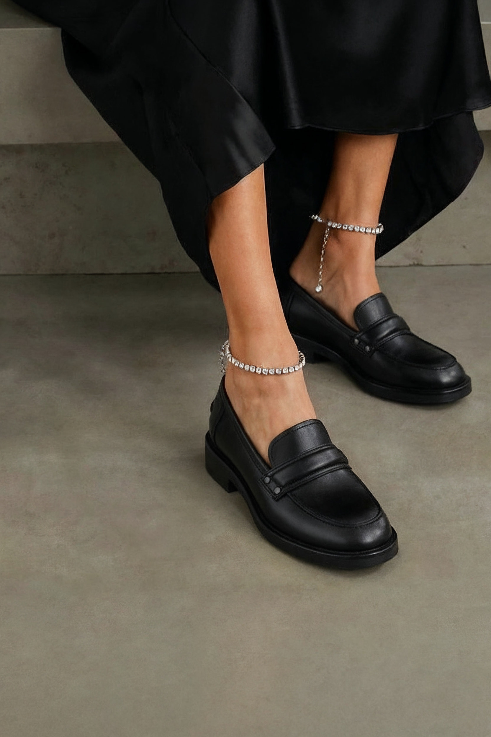 Очень крутые лоферы, сидят классно, ступня 24 см, размер 37 отлично! колодка на нормальную полноту, пальчики не упираются, не жмут, короче говоря ножке комфортно! Скользкими не показались, отходила в них неделю.