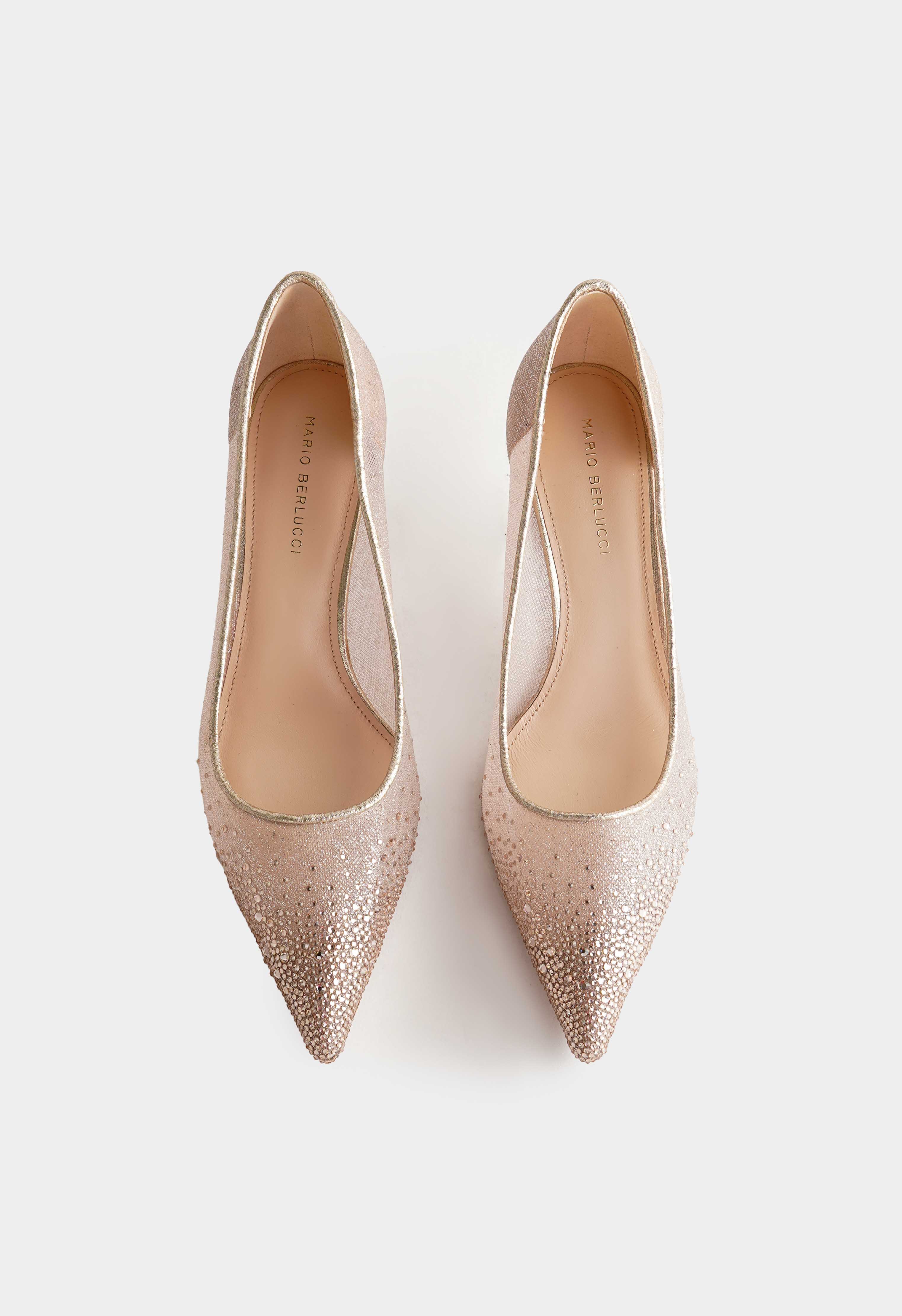 Эффектные золотые туфли – идеальный выбор для тех, кто любит привлекать внимание. Сочетание натуральной кожи и текстиля со сверкающими стразами создает роскошный акцент и придает образу особое сияние, а заострённый мысок подчеркивает элегантный силуэт. Удобный клиновидный каблук обеспечивает устойчивость и комфорт, в то время как гибкая подошва дарит легкость в каждом шаге.