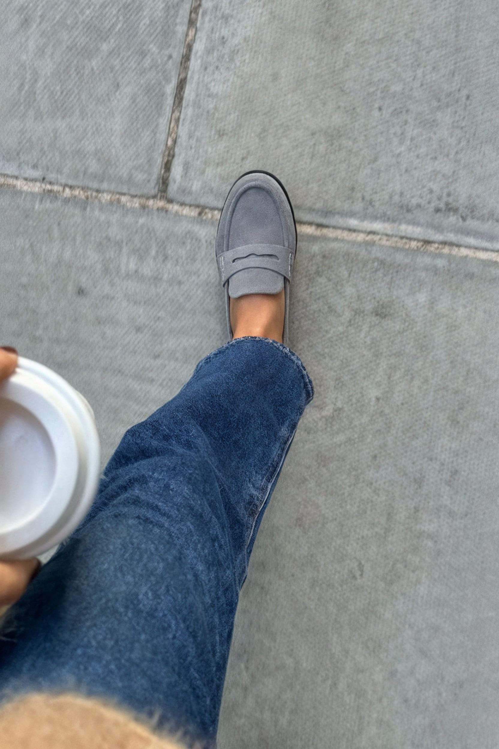 Серые лоферы из натуральной замши воплощают в себе утонченность и комфорт. Мягкая текстура замши приятно ощущается на ногах, даря свободу и удобство в каждом шаге, а нейтральный серый оттенок идеально сочетается с различными стилями. Округлый мысок придает модели удобство, делая ее комфортной для повседневной носки. Широкий каблук обеспечивает уверенность в каждом шаге, позволяя вам чувствовать себя комфортно даже в течение долгого дня.