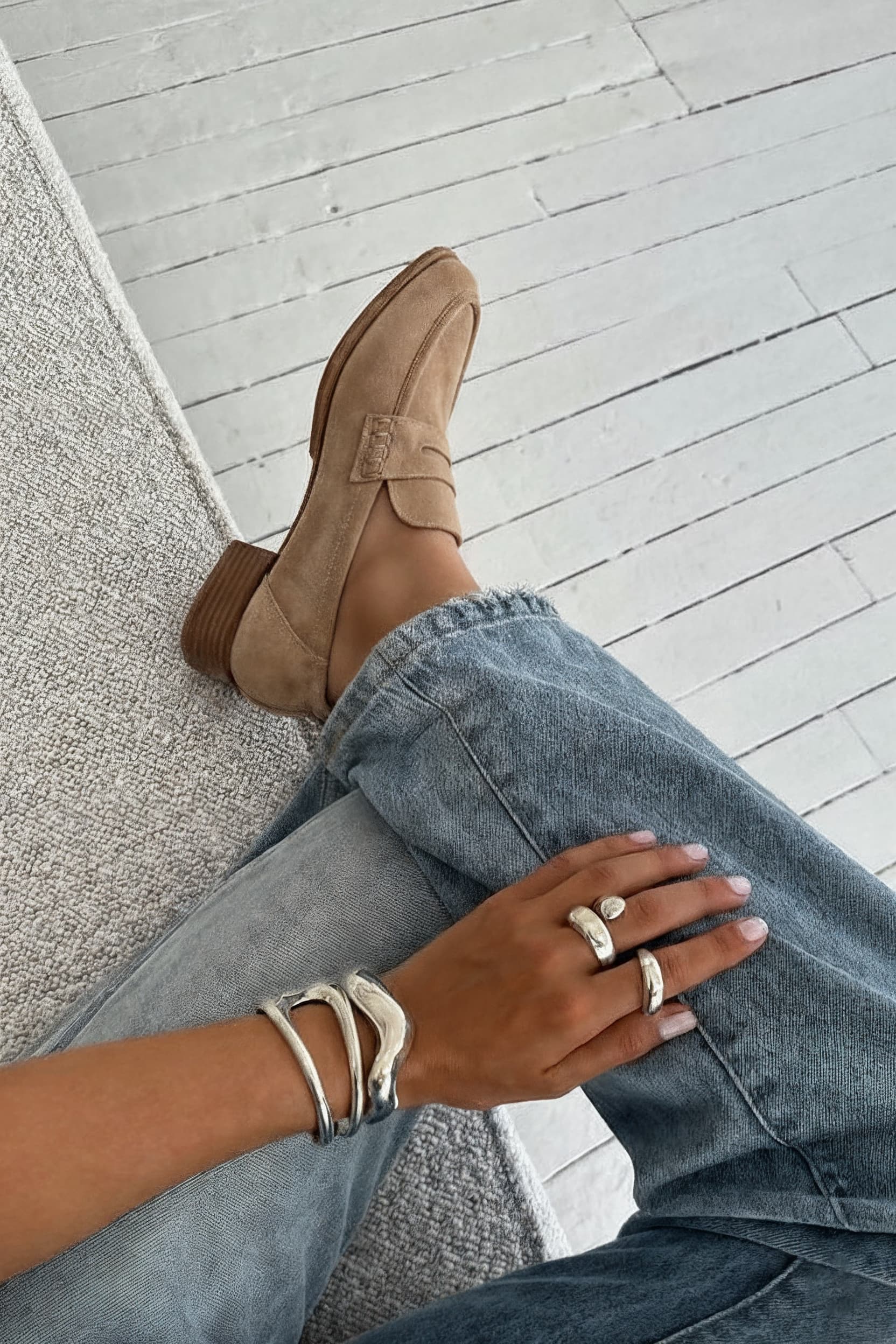 Бежевые лоферы из мягкой натуральной замши – это универсальная модель с акцентом на комфорт и стиль. Округлый мысок, устойчивый широкий каблук и гибкая подошва делают их идеальными на каждый день, не жертвуя ни удобством, ни эстетикой. Модель легко вписывается в гардероб и создана для тех, кто выбирает спокойную уверенность и любит подчеркивать индивидуальность через детали.