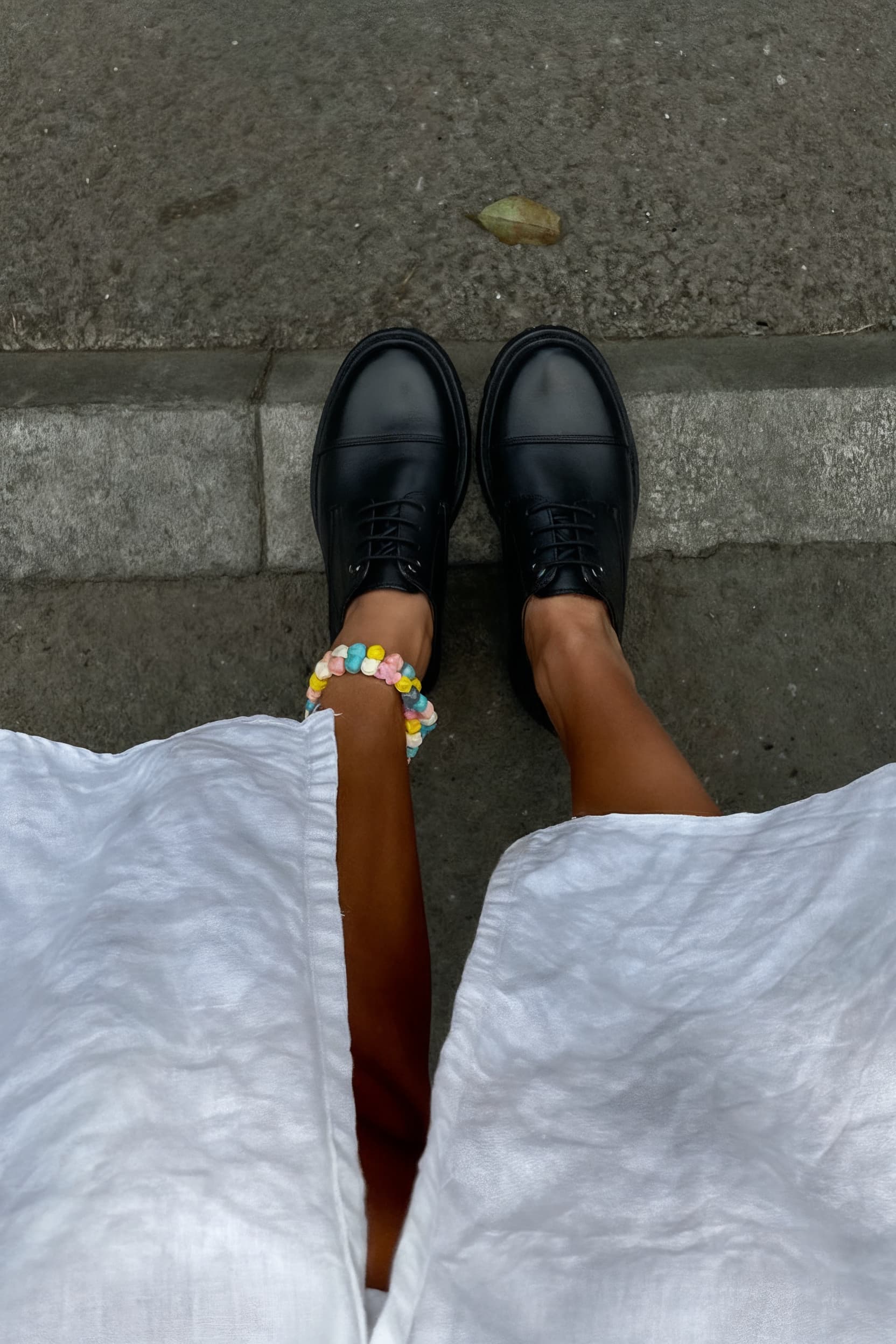 Элегантные черные оксфорды из натуральной кожи – идеальный выбор для тех, кто ценит стиль и комфорт в каждом дне. Надежная жесткая подошва и широкий каблук гарантируют устойчивость и поддержку, обеспечивая уверенность при каждом шаге. Округлый мысок придает обуви классический, в то же время современный вид, а шнуровка с металлической фурнитурой добавляет изящные детали, подчеркивающие ваш статус и вкус.