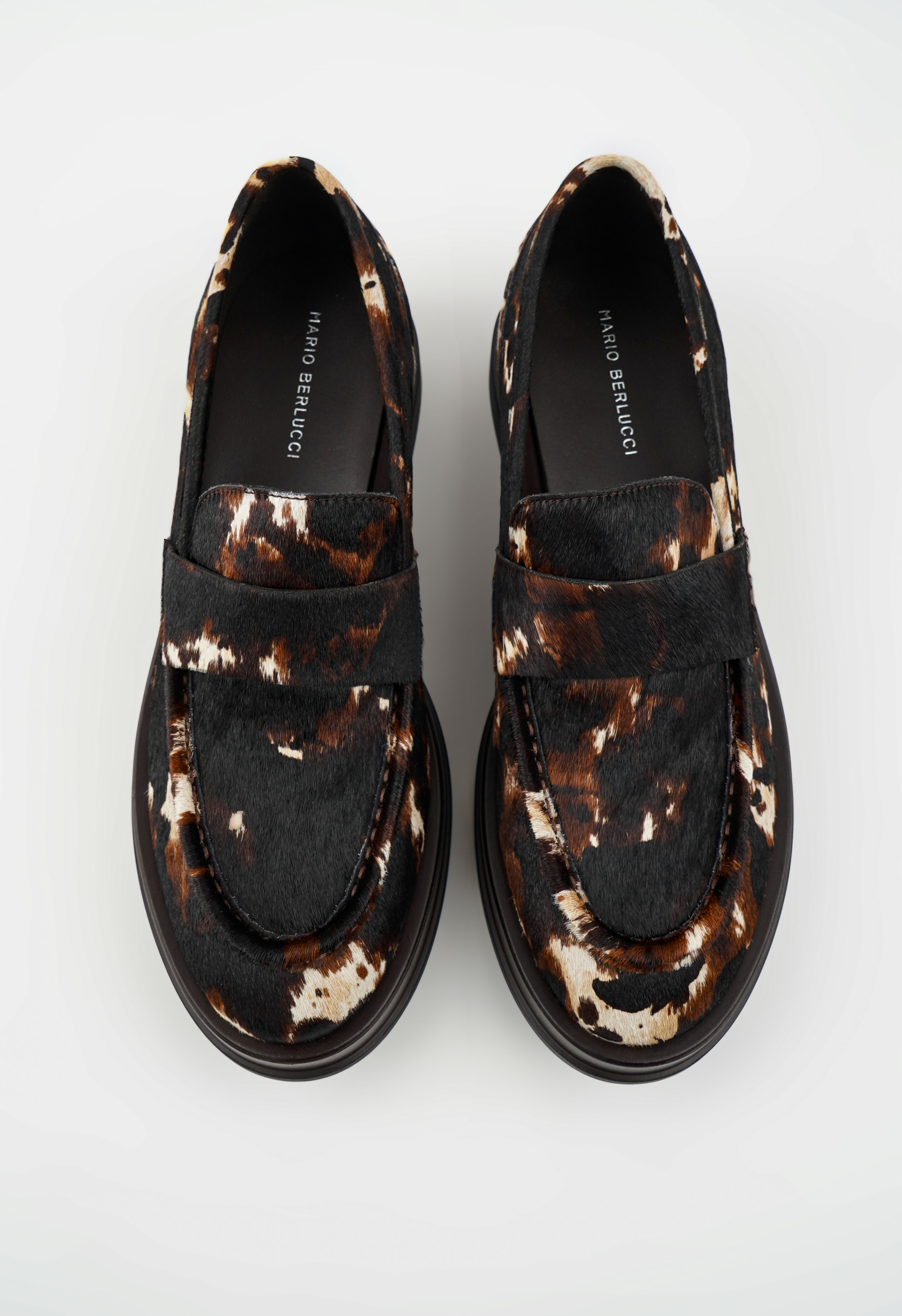 Эти лоферы из меха пони – яркое воплощение стиля и комфорта для вашего повседневного гардероба. Жесткая подошва с широким каблуком дарит устойчивость и уверенность при каждом шаге, а округлый мысок делает образ мягким и гармоничным. Расцветка мульти привлекает взгляды и легко вписывается в разные стили, добавляя изюминку даже к самым простым нарядам. Модель не только эффектно смотрится, но и невероятно удобна: мягкий мех пони мягко обхватывает стопу, создавая ощущение тепла и уюта.