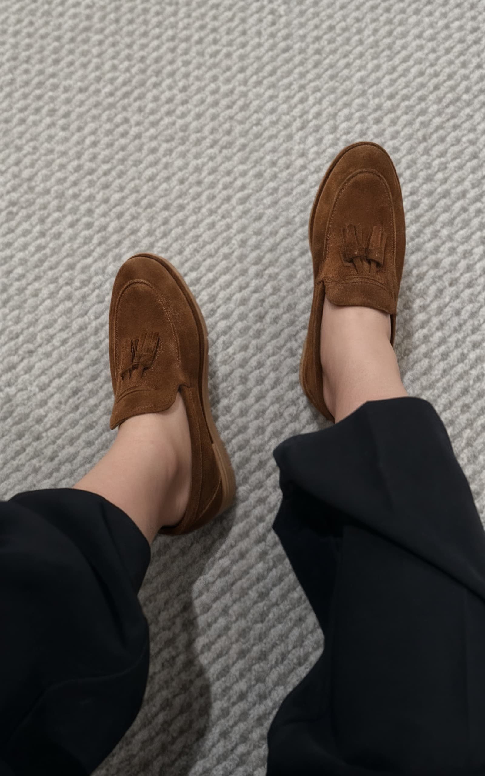 Стильные лоферы из натуральной замши в теплом коричневом оттенке – это сочетание элегантности и абсолютного комфорта. Мягкая замша нежно облегает стопу, а гибкая подошва и устойчивая платформа обеспечивают легкость и уверенность в каждом шаге. Округлый мысок придает модели изысканность и позволяет чувствовать себя свободно в течение всего дня. Эти лоферы станут стильным акцентом в повседневных образах и идеально подойдут для динамичного ритма городской жизни.