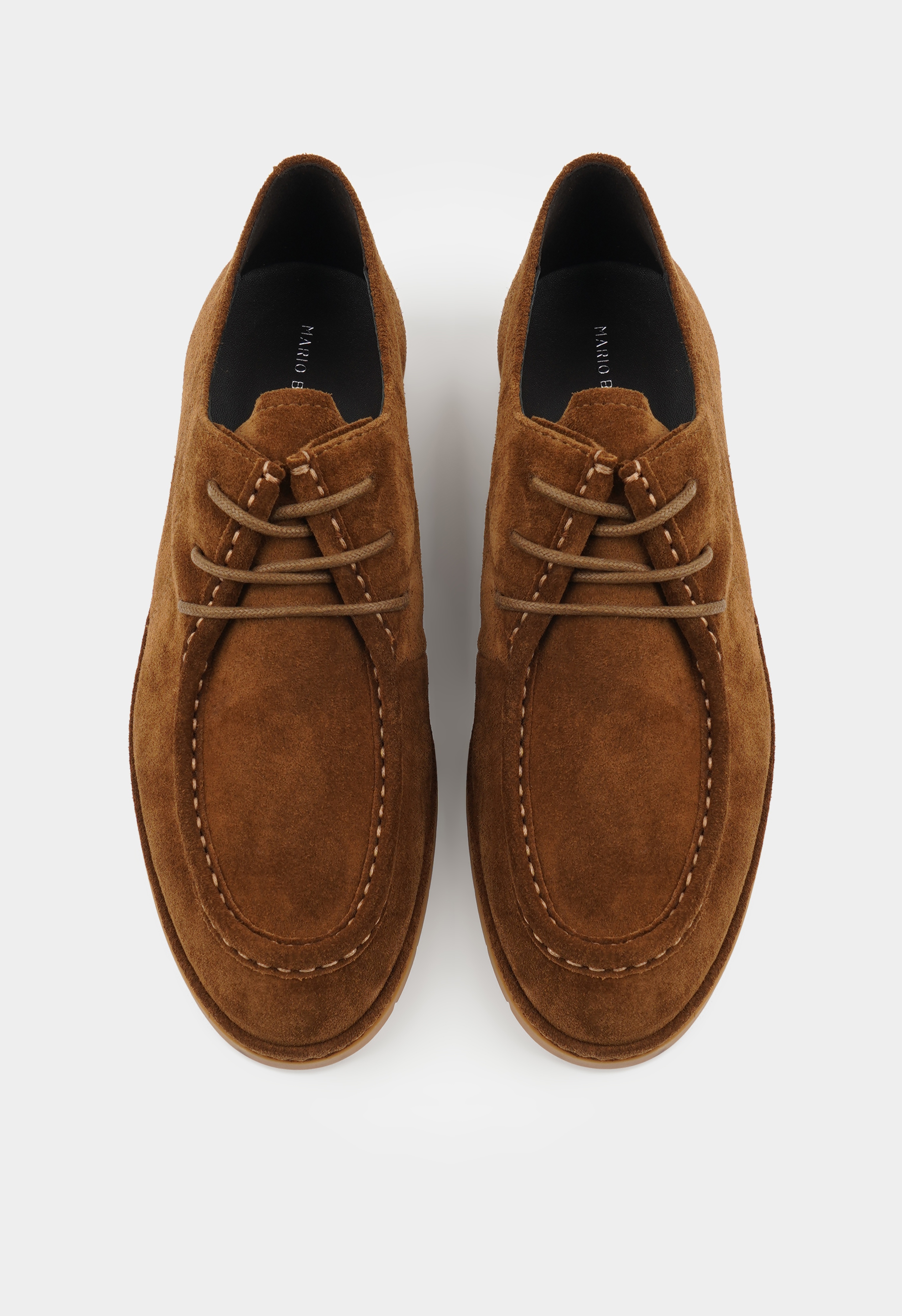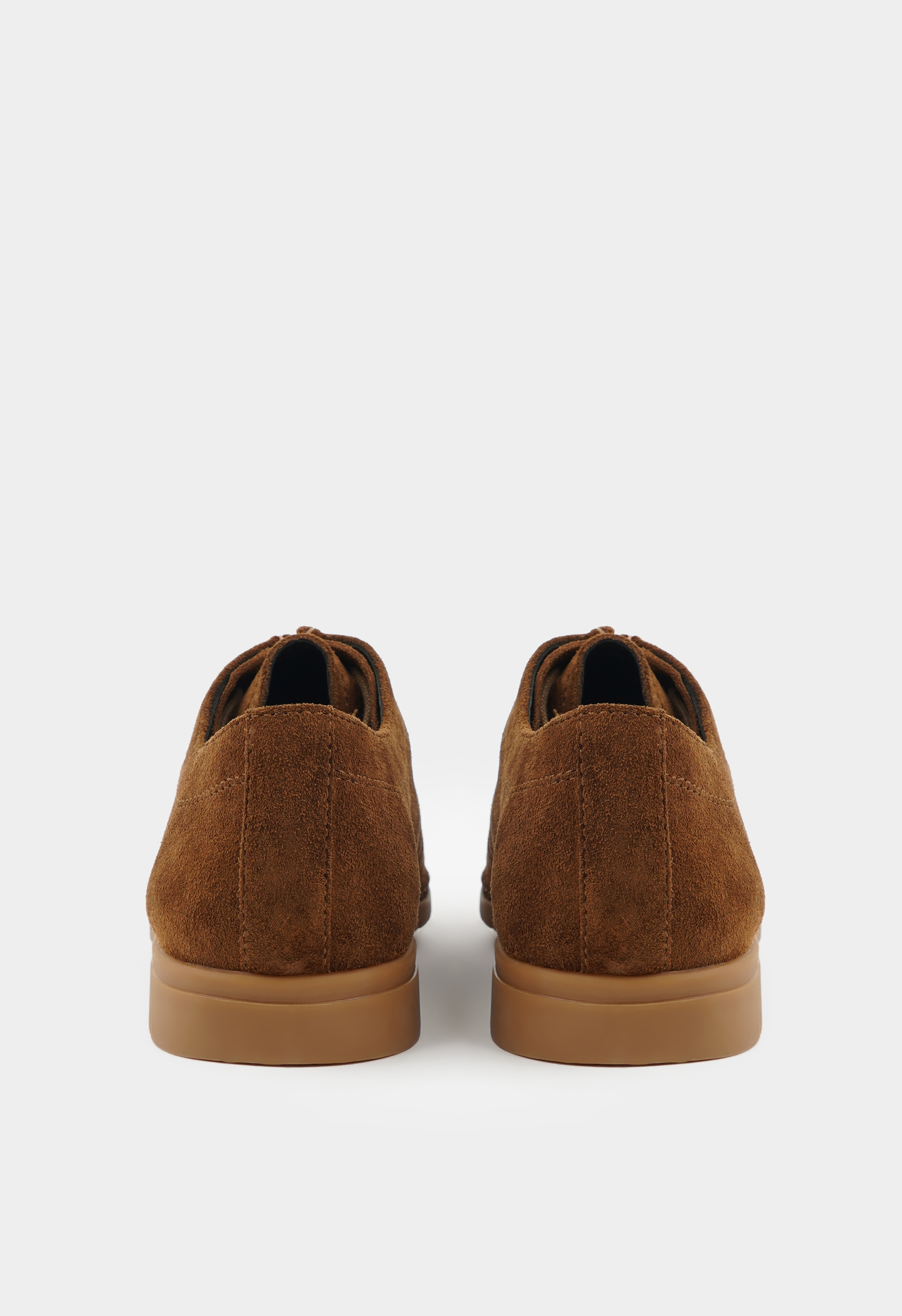 Полуботинки из натуральной замши в благородном коричневом цвете – универсальная обувь для тех, кто ценит стиль и комфорт каждый день. Мягкая замша создает ощущение уюта, а гибкая подошва и аккуратный округлый мысок дарят легкость и свободу движений. Классическая шнуровка подчеркивает аккуратный силуэт и позволяет идеально регулировать посадку. Эта модель легко вписывается в повседневный гардероб и становится гармоничным завершением как деловых, так и расслабленных образов.