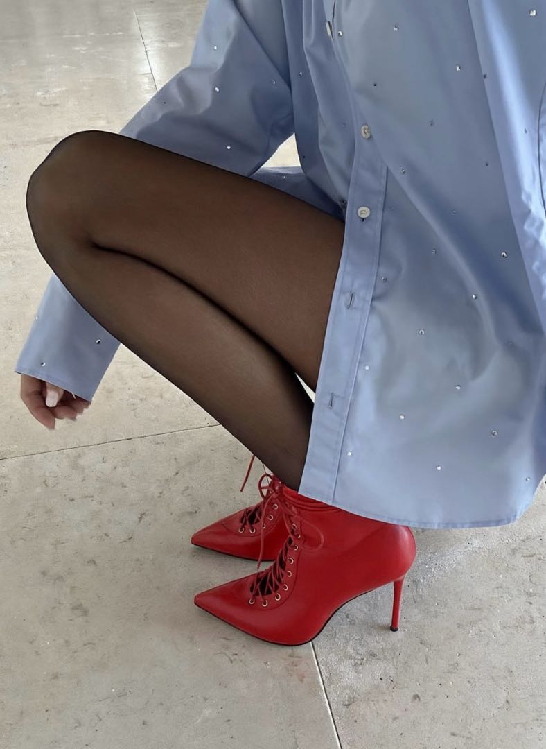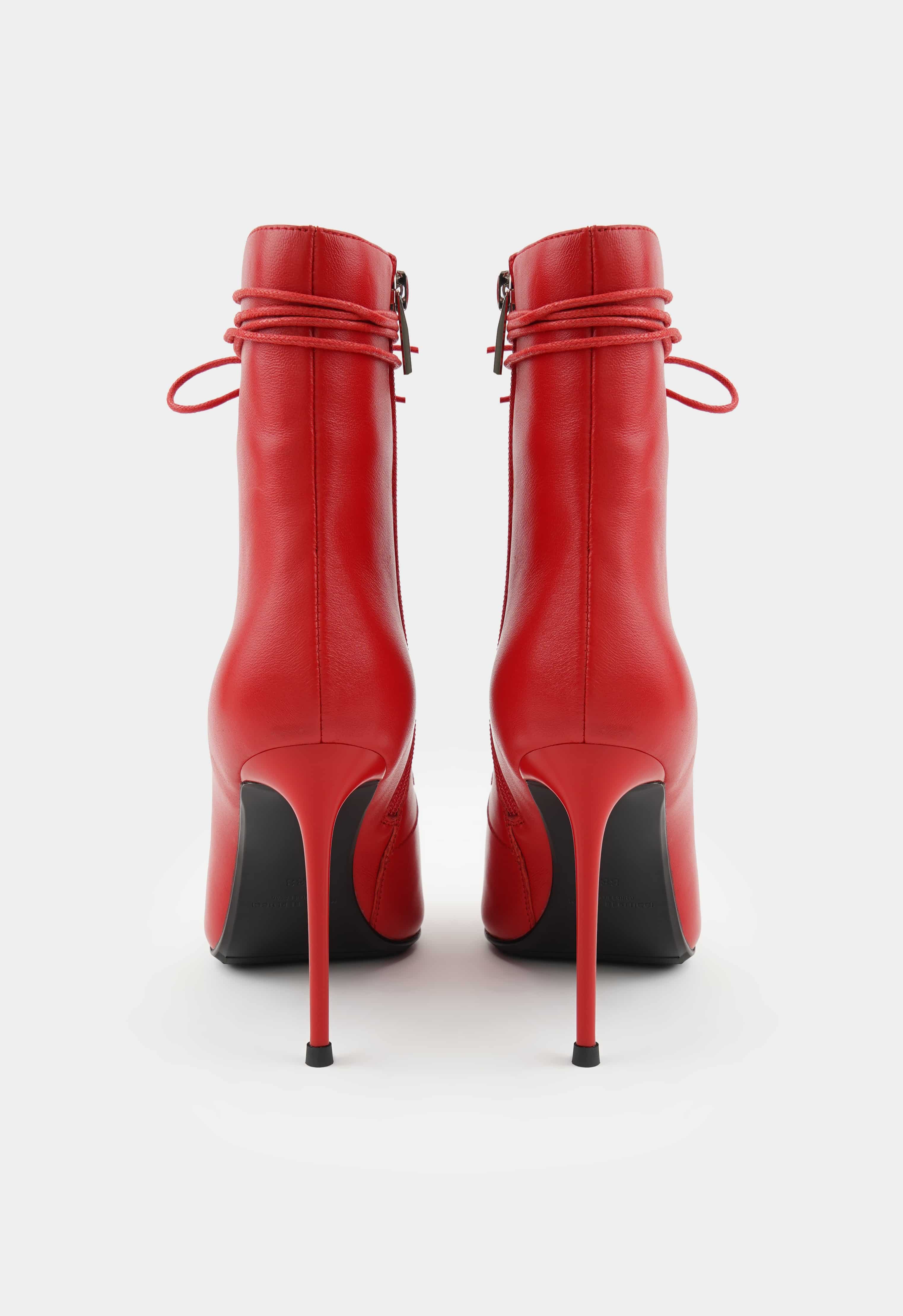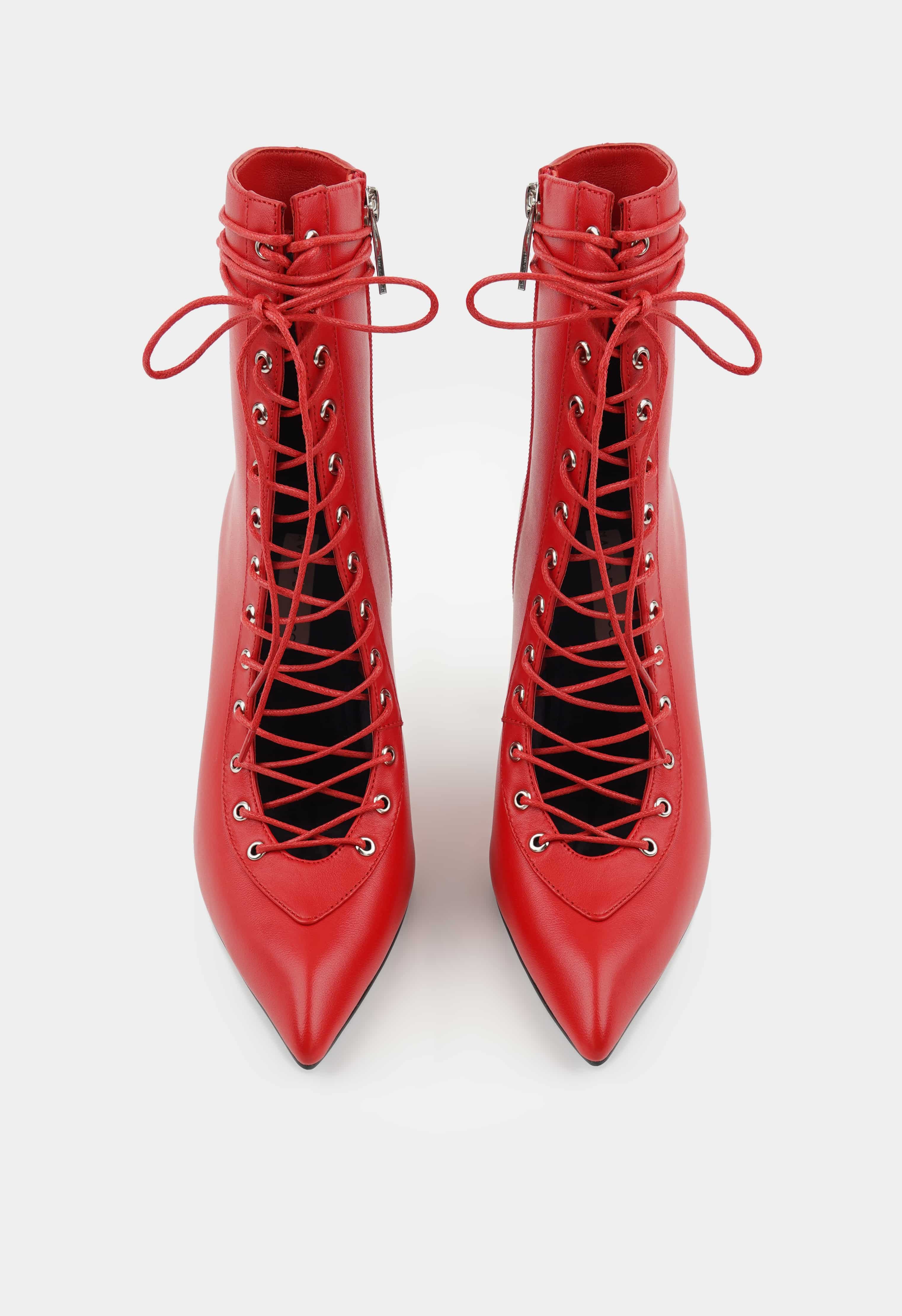 Яркие ботильоны из натуральной кожи с мягкой байкой внутри – смелое сочетание комфорта и яркого стиля. Насыщенный красный цвет мгновенно притягивает взгляды, а заостренный мысок и изящная шпилька подчеркивают женственность и уверенность в себе. Гибкая подошва дарит легкость движений, в то время как удобная комбинация шнуровки и молнии обеспечивает идеальную посадку. Серебряная фурнитура добавляет утонченного блеска, делая пару гармоничным акцентом в образе.