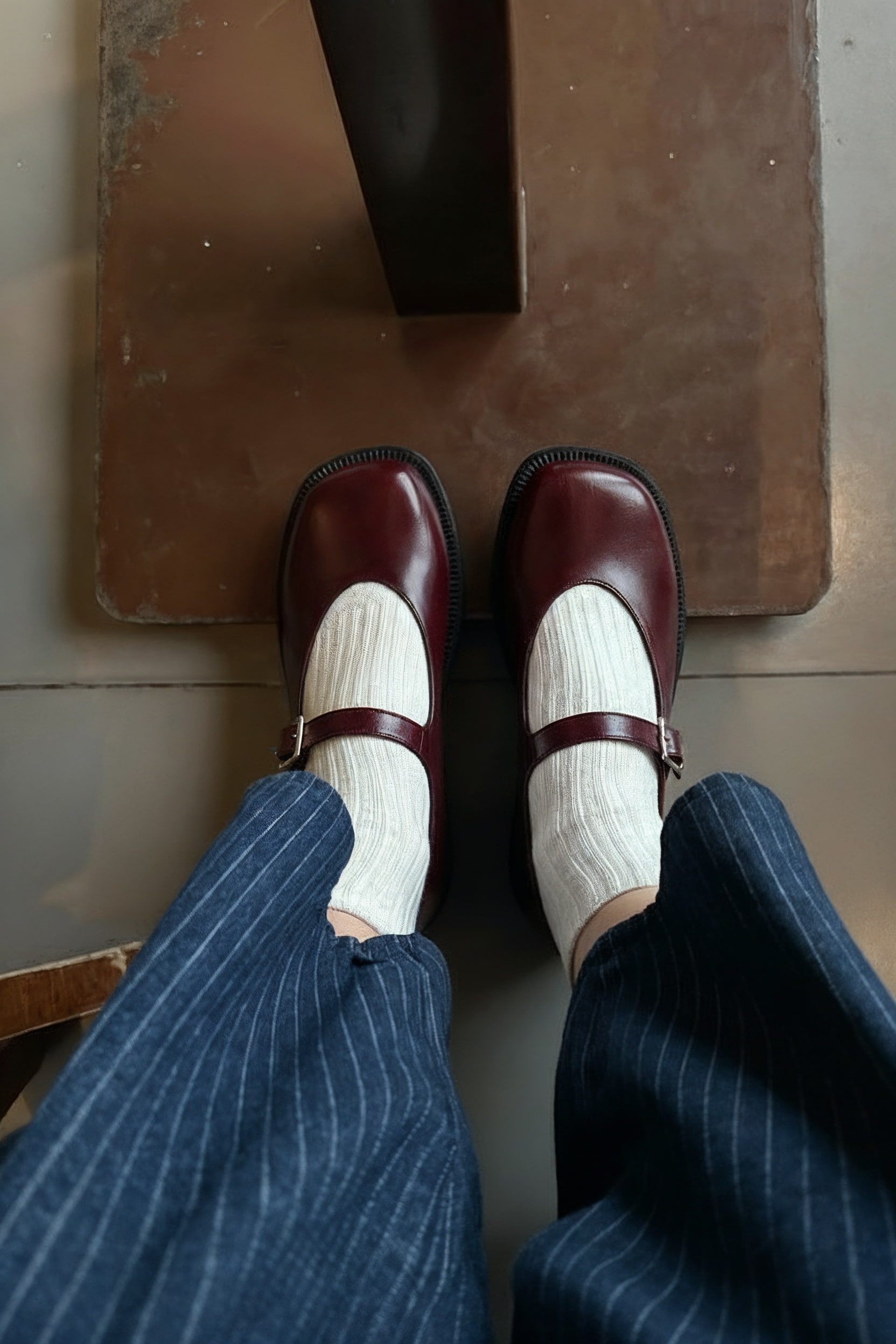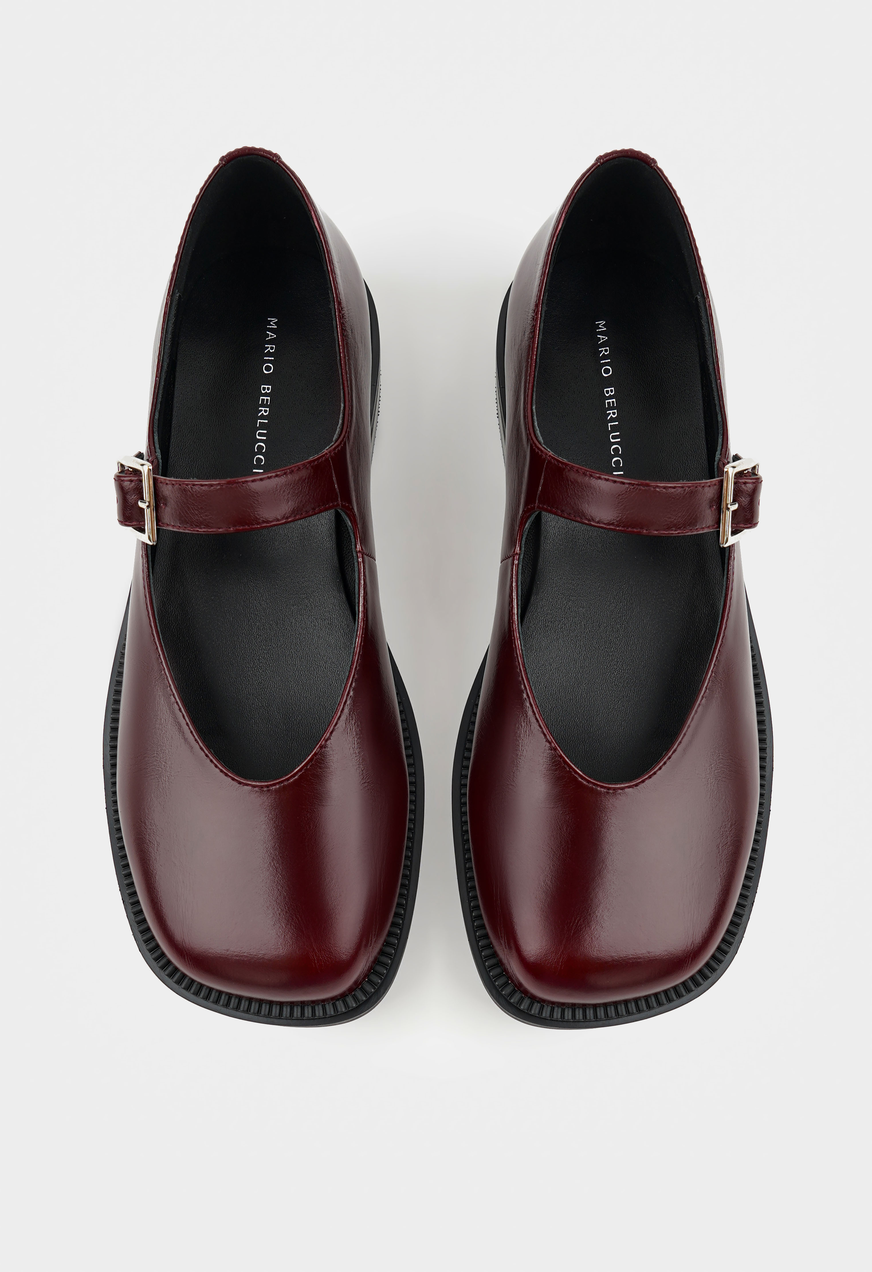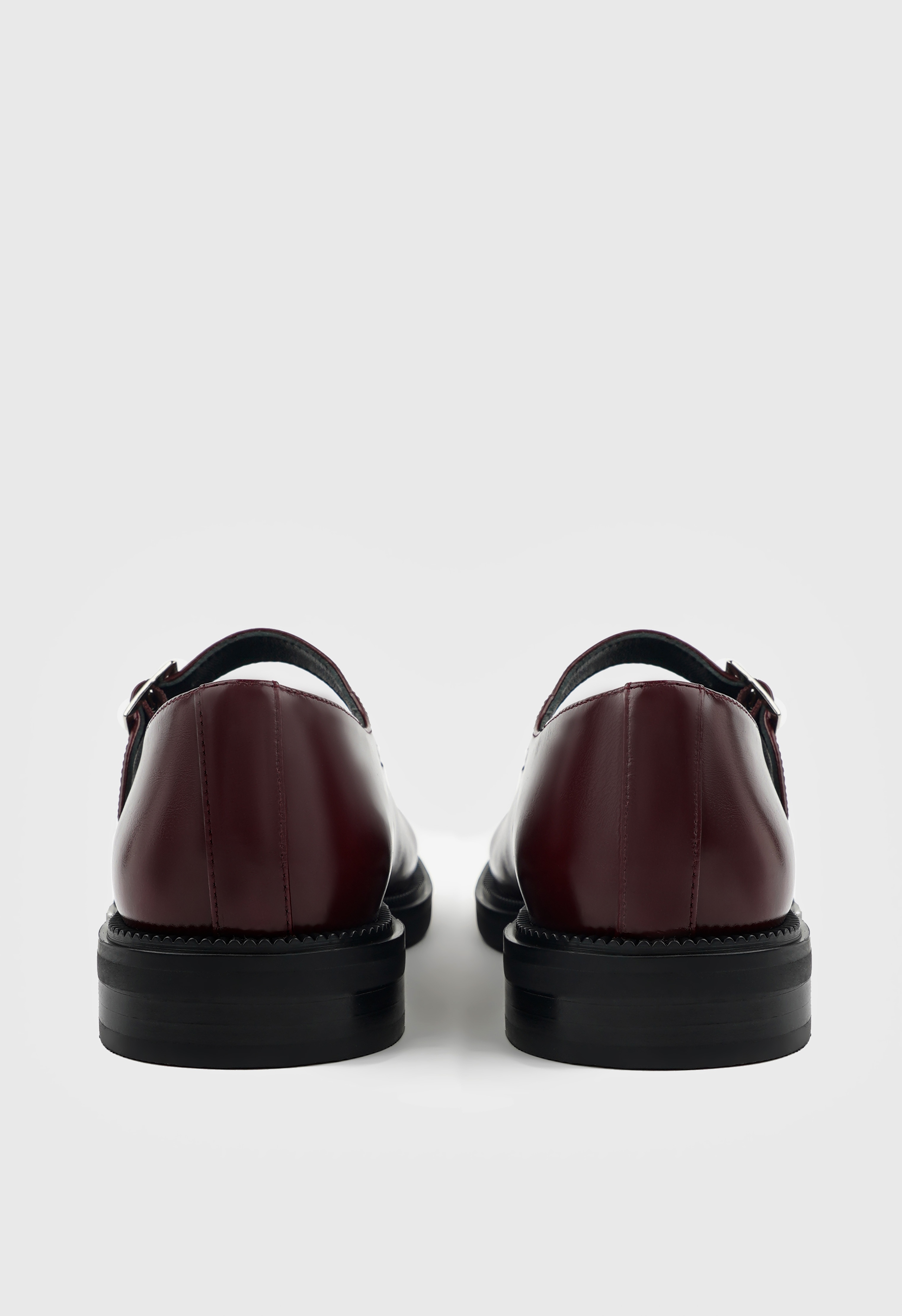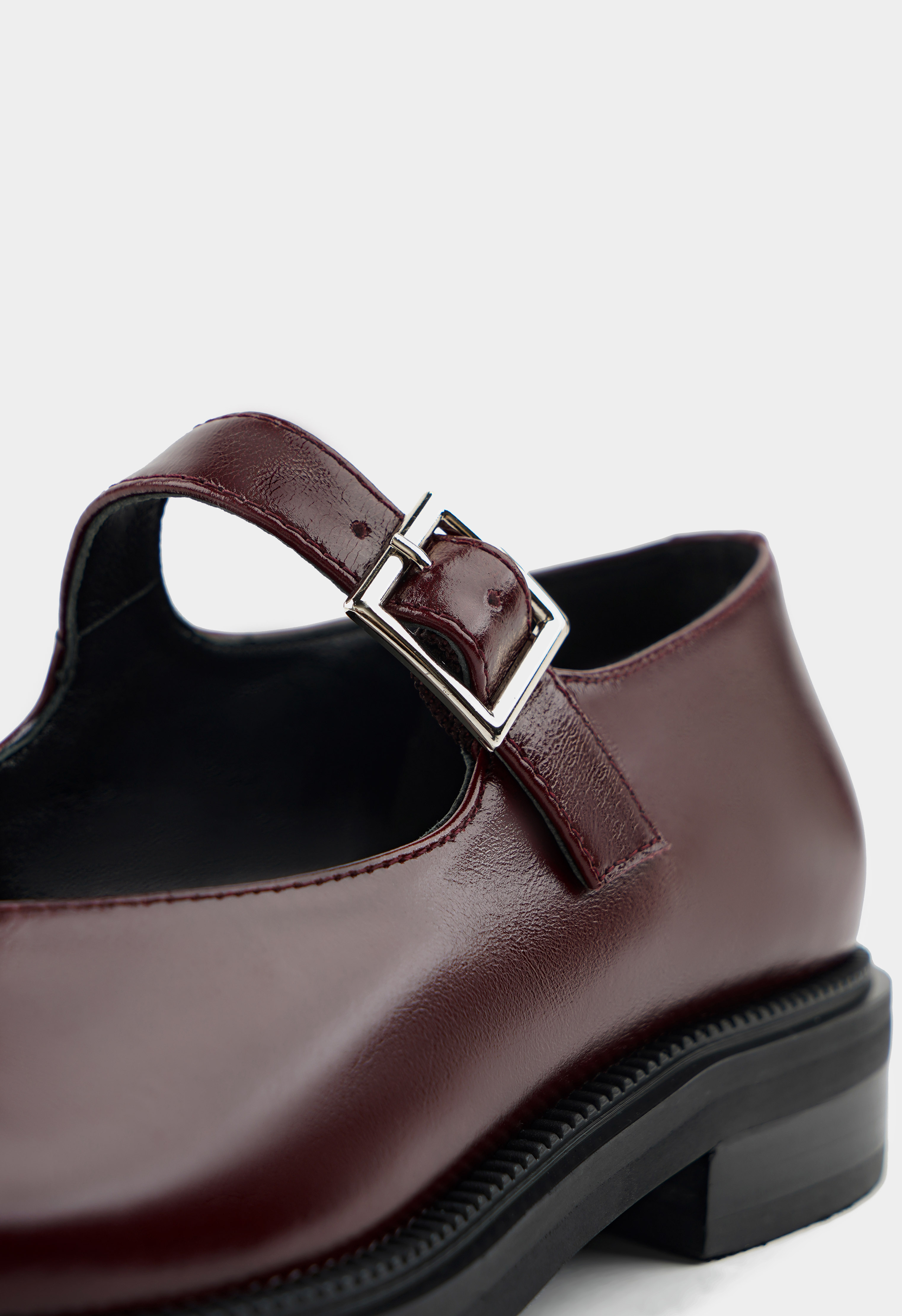 Элегантные туфли из натуральной кожи в насыщенном бордовом цвете – эффектный акцент, который освежит любой образ. Квадратный мысок и изящная серебряная пряжка добавляют характер, а венский каблук и гибкая подошва обеспечивают комфорт на весь день. Эта пара идеально балансирует между классикой и модными деталями, легко сочетается с базовыми и яркими вещами, оставаясь уместной в любое время года.
