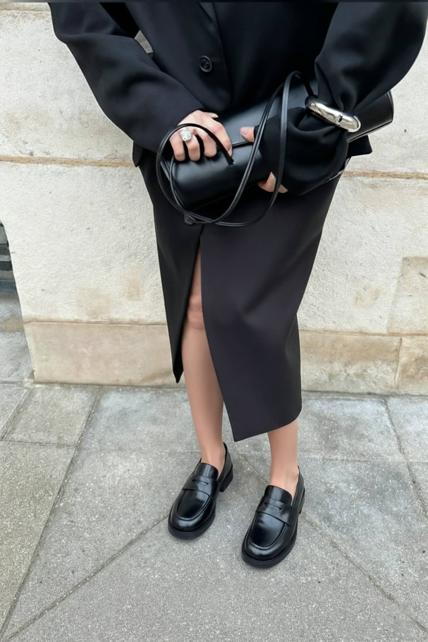 Эти элегантные черные лоферы из премиальной натуральной кожи воплощают эталон классического стиля, где каждая деталь подчеркивает безупречный вкус – лаконичный округлый мысок придает образу сдержанную утонченность, а солидный широкий каблук гарантирует устойчивость и комфорт в течение всего дня. Жесткая подошва обеспечивает надежную поддержку, сохраняя безукоризненную форму обуви, что делает эту модель идеальным выбором для деловых встреч, официальных мероприятий и повседневной носки в офисе.