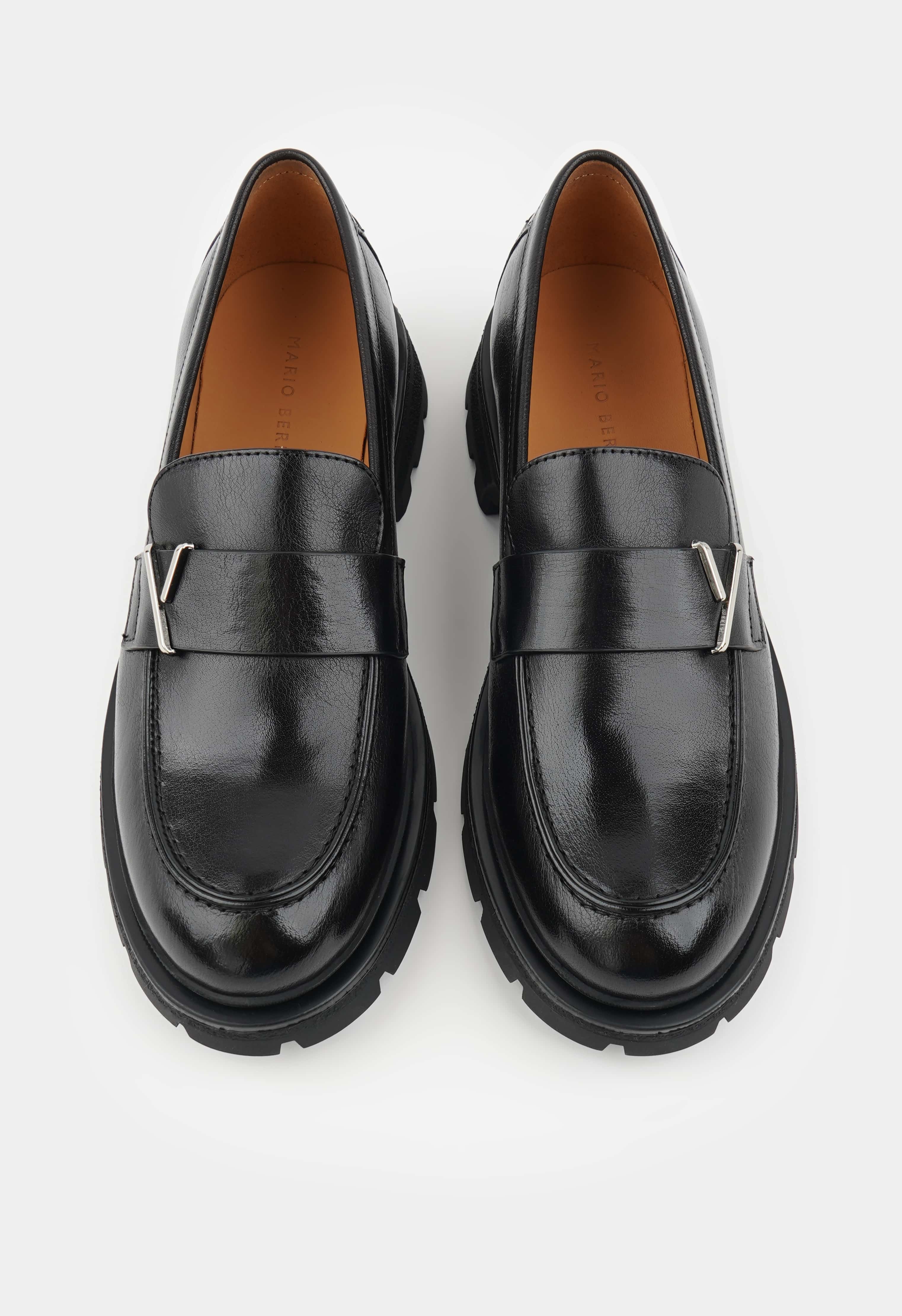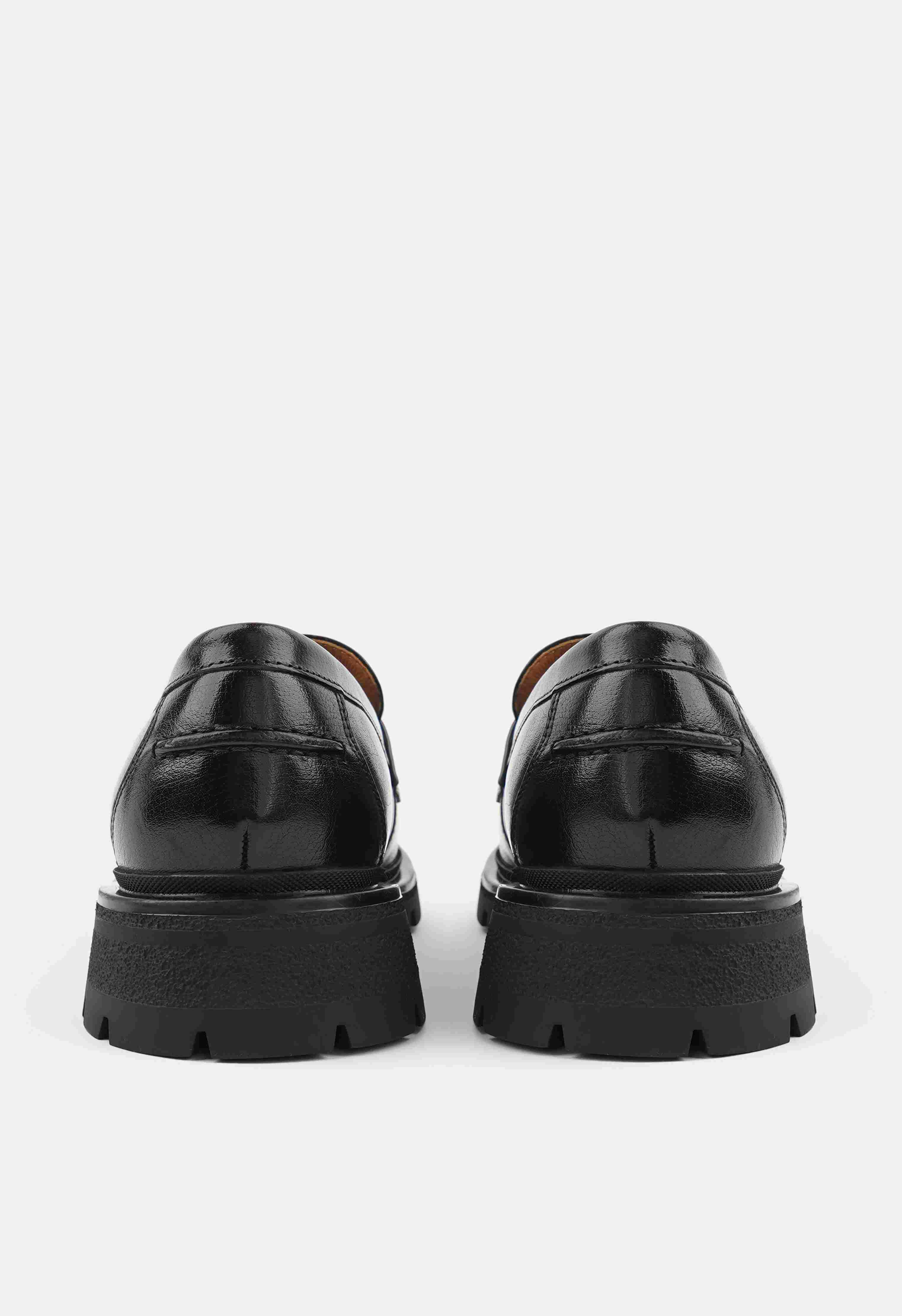 Элегантные лоферы из мягкой натуральной кожи – универсальная пара, которая одинаково уместна и в офисе, и на прогулке. Гибкая подошва и широкий устойчивый каблук дарят комфорт на весь день, а округлый мысок обеспечивает свободу движений и удобную посадку стопы. Стильная серебряная фурнитура придает образу изысканный акцент, в то время как классический черный цвет легко вписывается в любой гардероб.