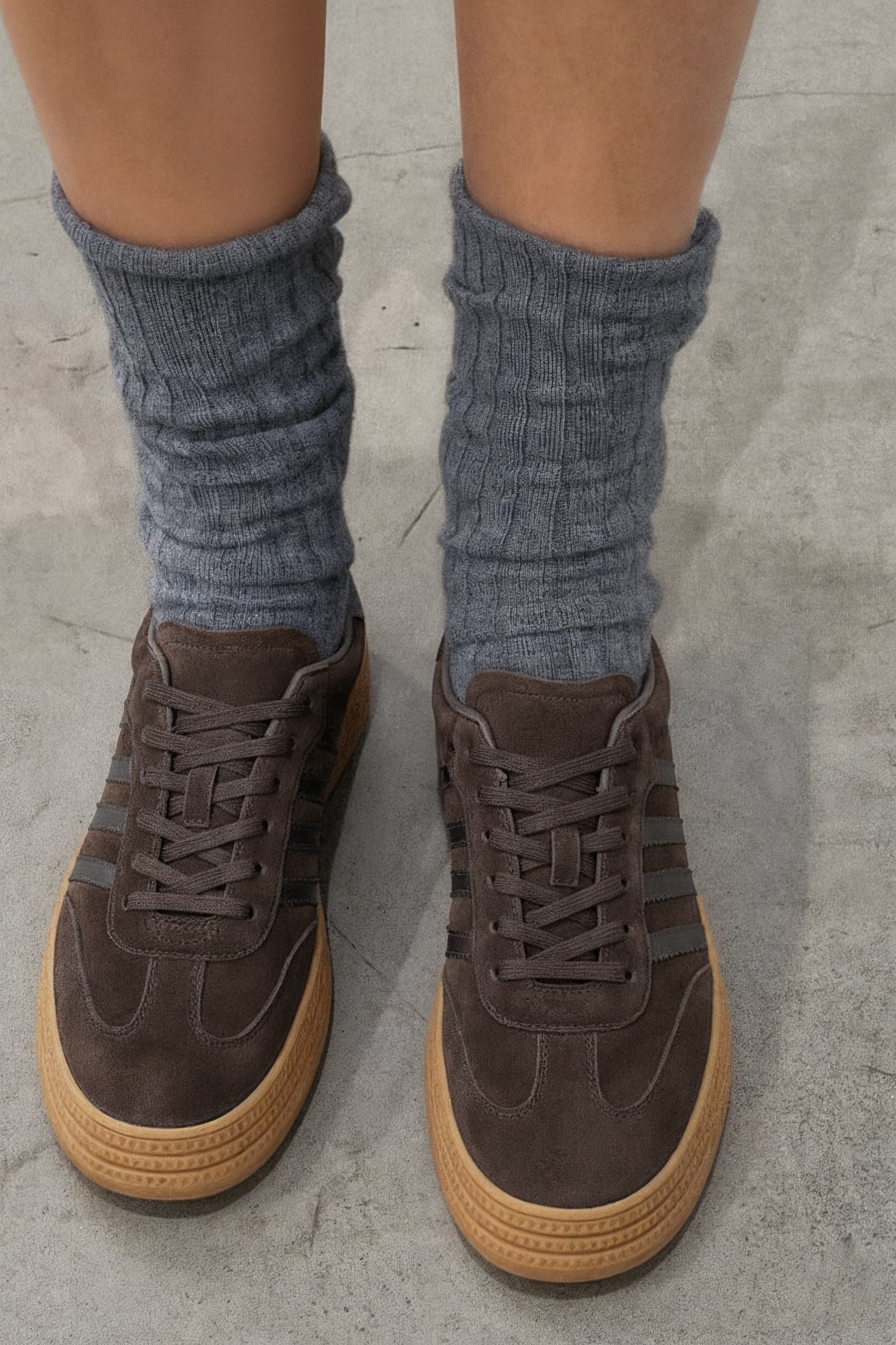 Стильные кеды из мягкой натуральной замши в теплом коричневом оттенке станут вашей любимой парой на каждый день. Гибкая подошва и удобная платформа обеспечивают комфорт при длительных прогулках, а округлый мысок и классическая шнуровка дарят стопе свободу и идеальную посадку. Натуральный материал приятно облегает ногу, сохраняя тепло и пропуская воздух, в то время как универсальный цвет легко сочетается с повседневными и более смелыми образами.