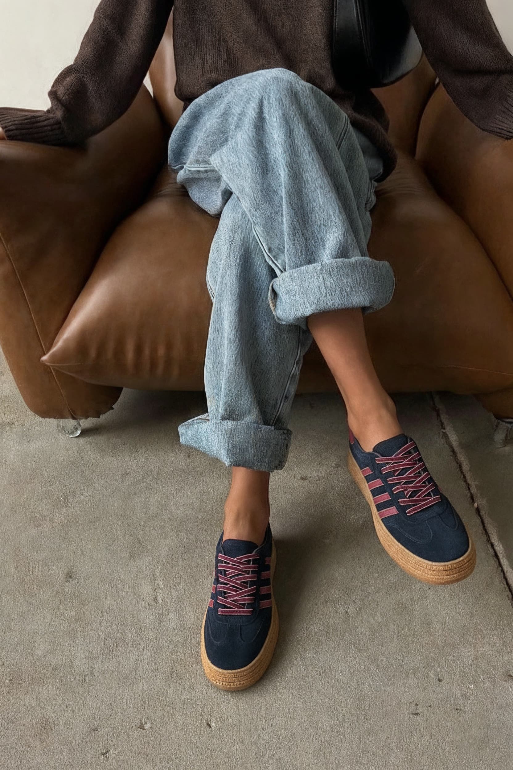 Стильные кеды из мягкой натуральной замши в базовом синем оттенке станут вашей любимой парой на каждый день. Гибкая подошва и удобная платформа обеспечивают комфорт при длительных прогулках, а округлый мысок и классическая шнуровка дарят стопе свободу и идеальную посадку. Натуральный материал приятно облегает ногу, сохраняя тепло и пропуская воздух, в то время как универсальный цвет легко сочетается с повседневными и более смелыми образами.