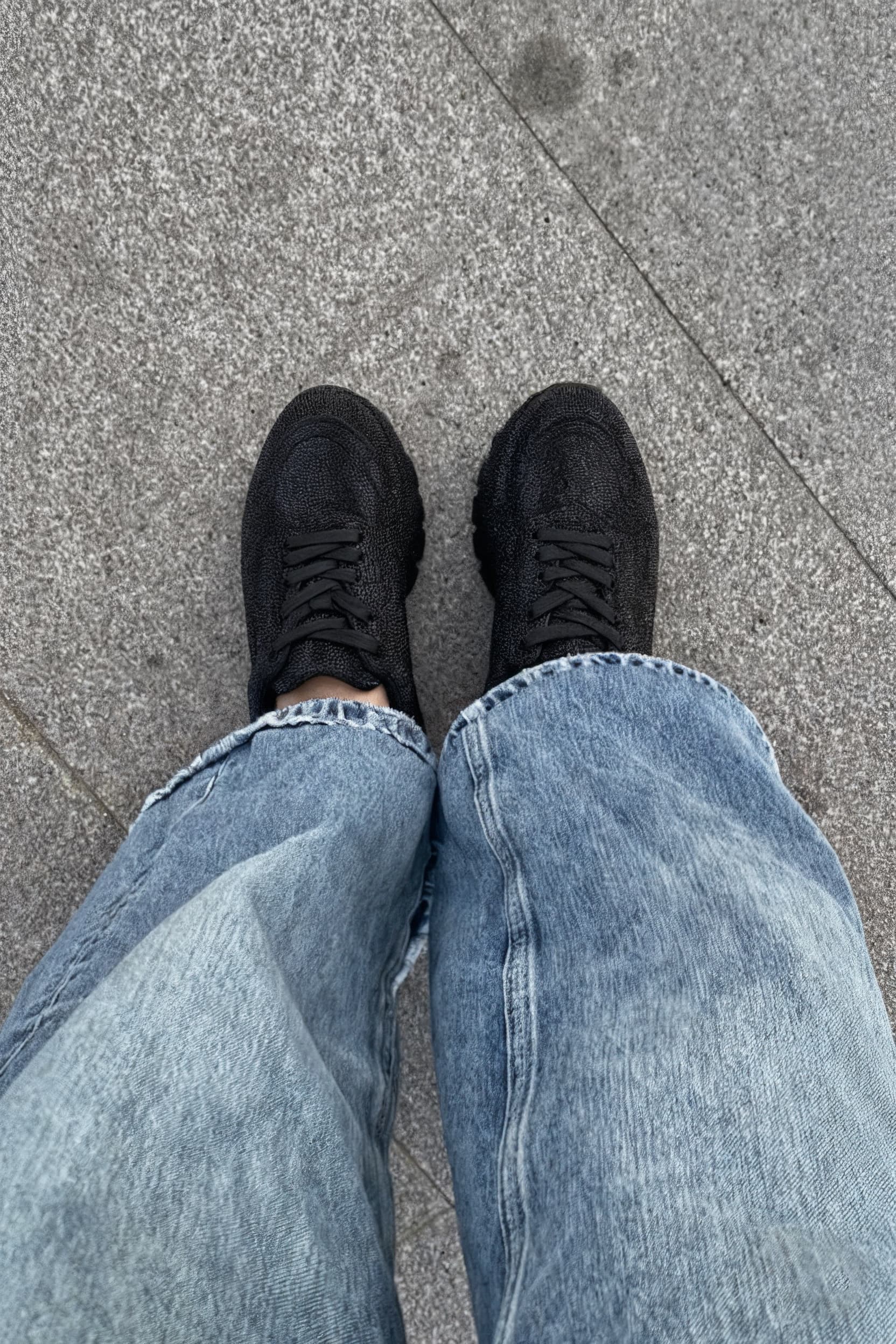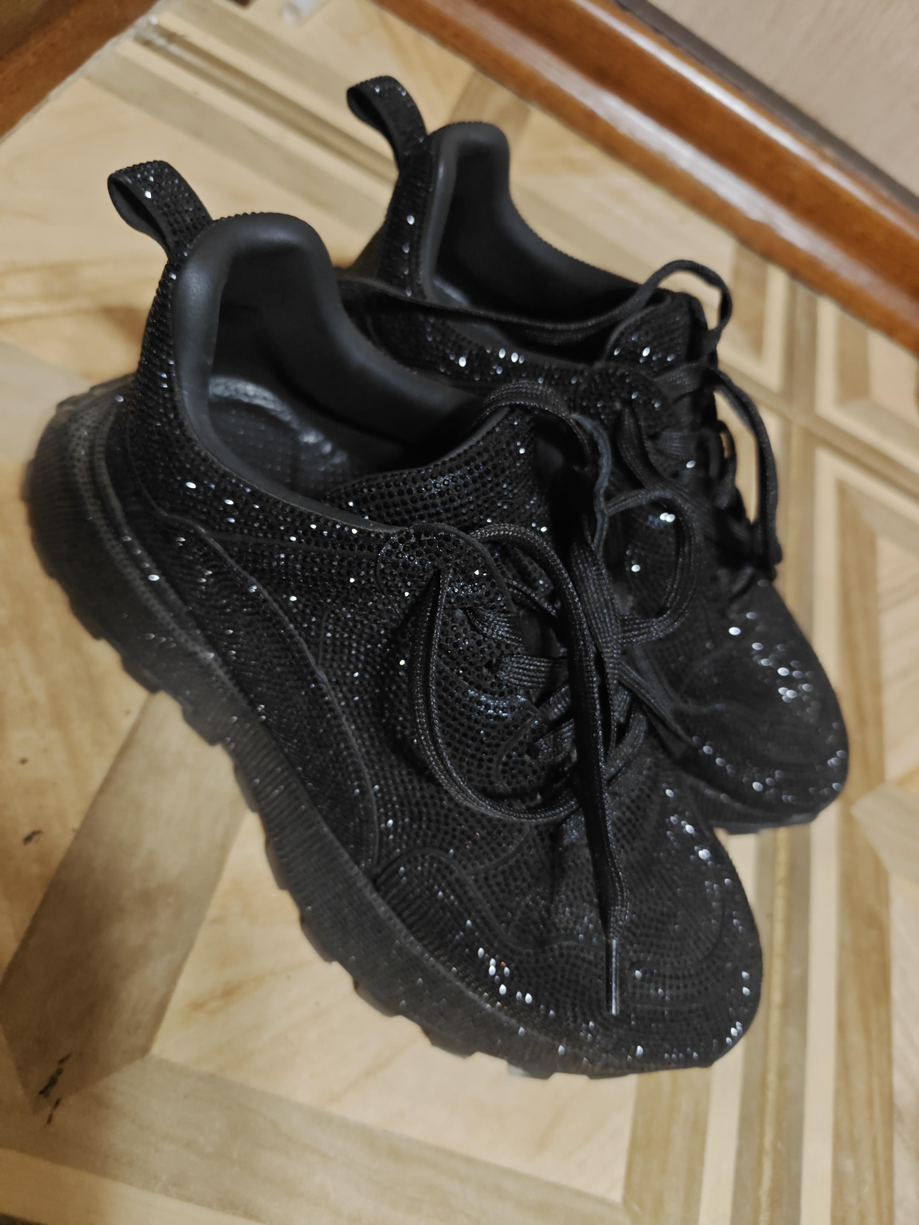 Кеды из натуральной замши с черными стразами – это дерзкое сочетание комфорта и выразительного стиля. Жесткая подошва и устойчивая платформа обеспечивают отличную поддержку на каждый день, а округлый мысок и классическая шнуровка – удобную и надежную посадку. Глубокий черный цвет делает пару универсальной, а мерцание страз добавляет изюминку образу. Эти кеды подойдут и для активного дня в городе, и для вечерней прогулки, когда хочется блистать и быть заметной.