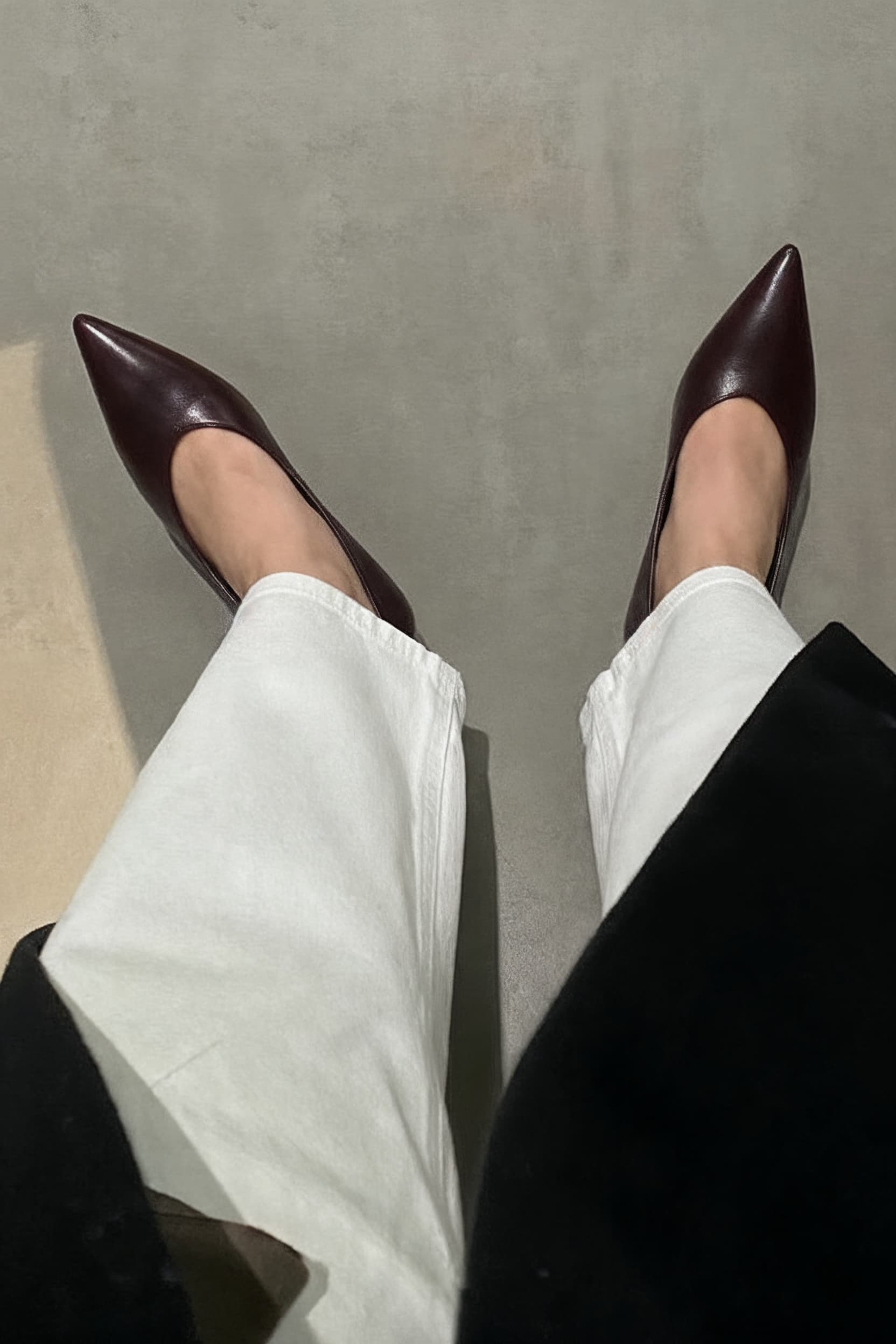 Эти бордовые туфли из натуральной кожи с черными стразами – воплощение элегантности с легким блеском дерзости. Гибкая подошва и устойчивый каблук kitten heel дарят ощущение уверенности и комфорта весь день, а заострённый мысок визуально вытягивает силуэт. Глубокий оттенок и мерцающие детали подчеркивают индивидуальность, не теряя практичности.