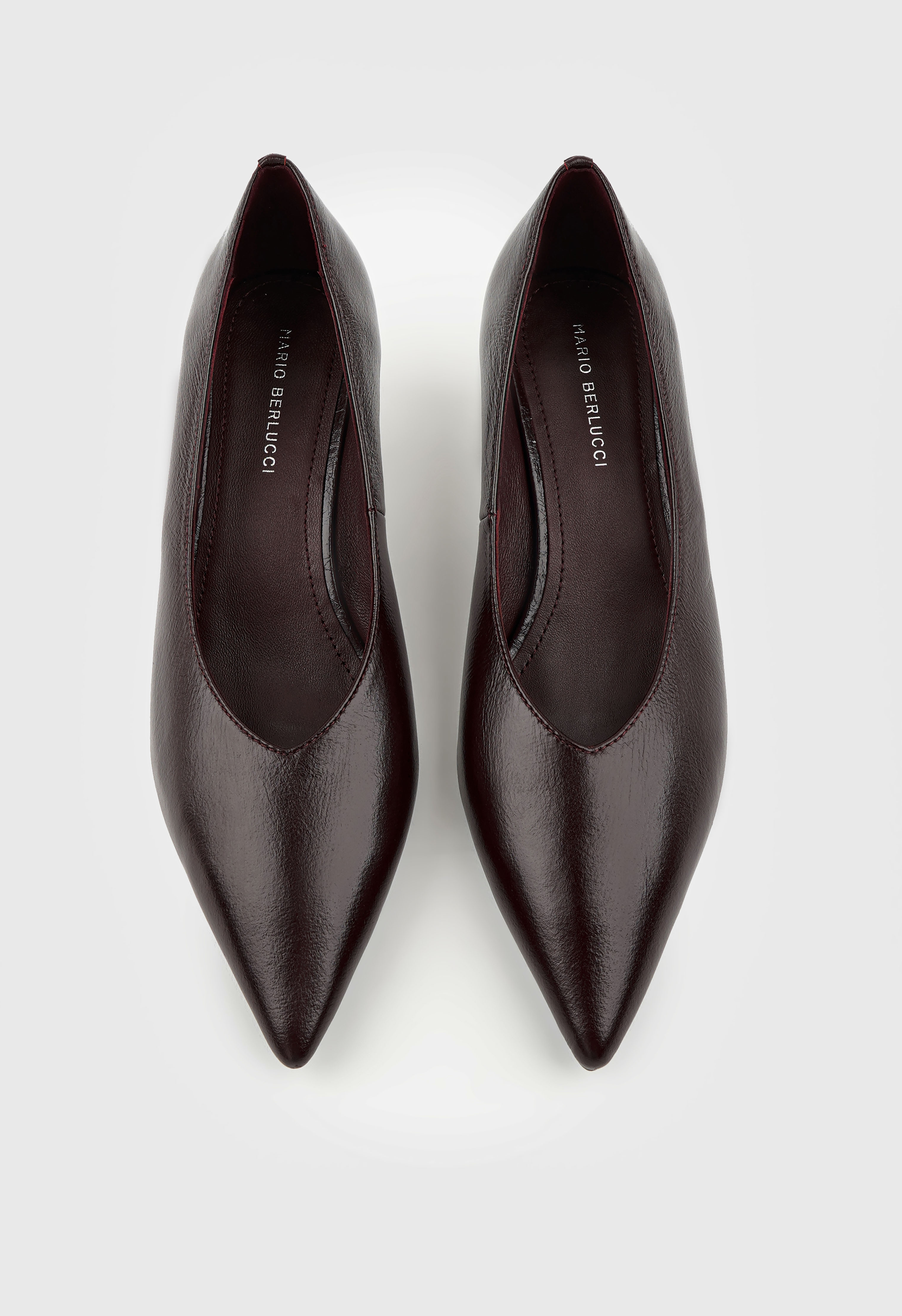 Эти бордовые туфли из натуральной кожи – воплощение элегантности с легким блеском дерзости. Гибкая подошва и устойчивый каблук kitten heel дарят ощущение уверенности и комфорта весь день, а заострённый мысок визуально вытягивает силуэт. Глубокий оттенок и мерцающие детали подчеркивают индивидуальность, не теряя практичности.