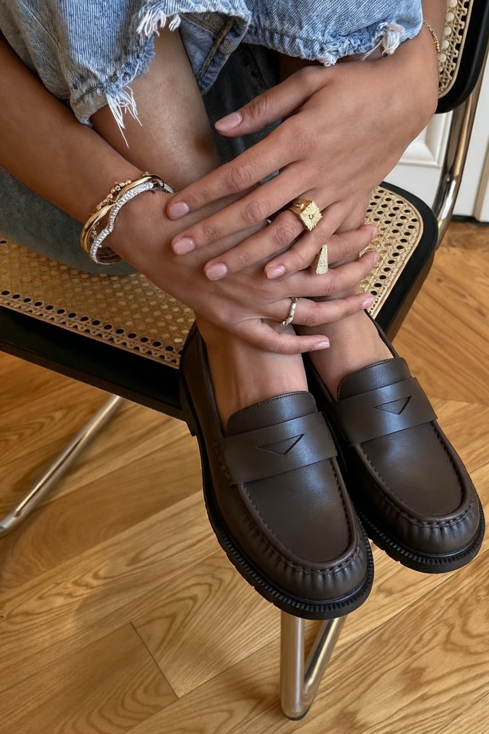 Эти лоферы из мягкой натуральной кожи – находка для тех, кто хочет выглядеть собранно, но чувствовать себя расслабленно. Коричневый цвет делает их базой для любого гардероба, а округлый мысок и широкий каблук дарят комфорт даже в самый насыщенный день. Гибкая подошва мягко подстраивается под шаг, чтобы вы не думали об обуви, а шли по своим делам с комфортом.