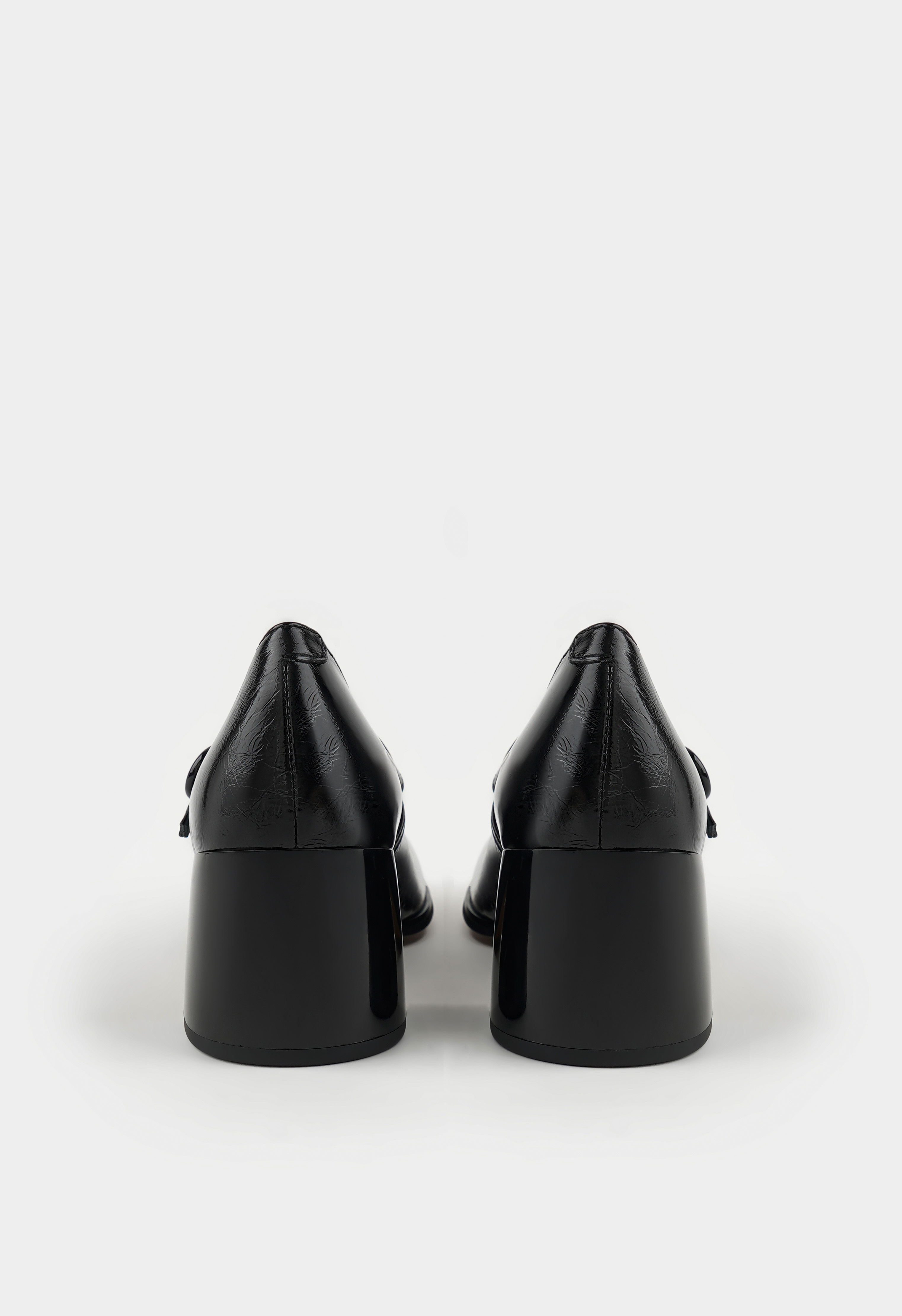 Классические черные туфли подойдут тем, кто ценит элегантность и комфорт в повседневных образах. Выполненные из натуральной кожи, они отличаются мягкостью, долговечностью и безупречным внешним видом. Округлый мысок создает удобную посадку стопы, гибкая подошва обеспечивает легкость шага, а устойчивый широкий каблук добавляет уверенности и стабильности при движении. Серебряная и черная фурнитура в сочетании с изящной пряжкой придают модели современный акцент и утонченность, делая эти туфли универсальным вариантом как для офиса, так и для особых случаев.
