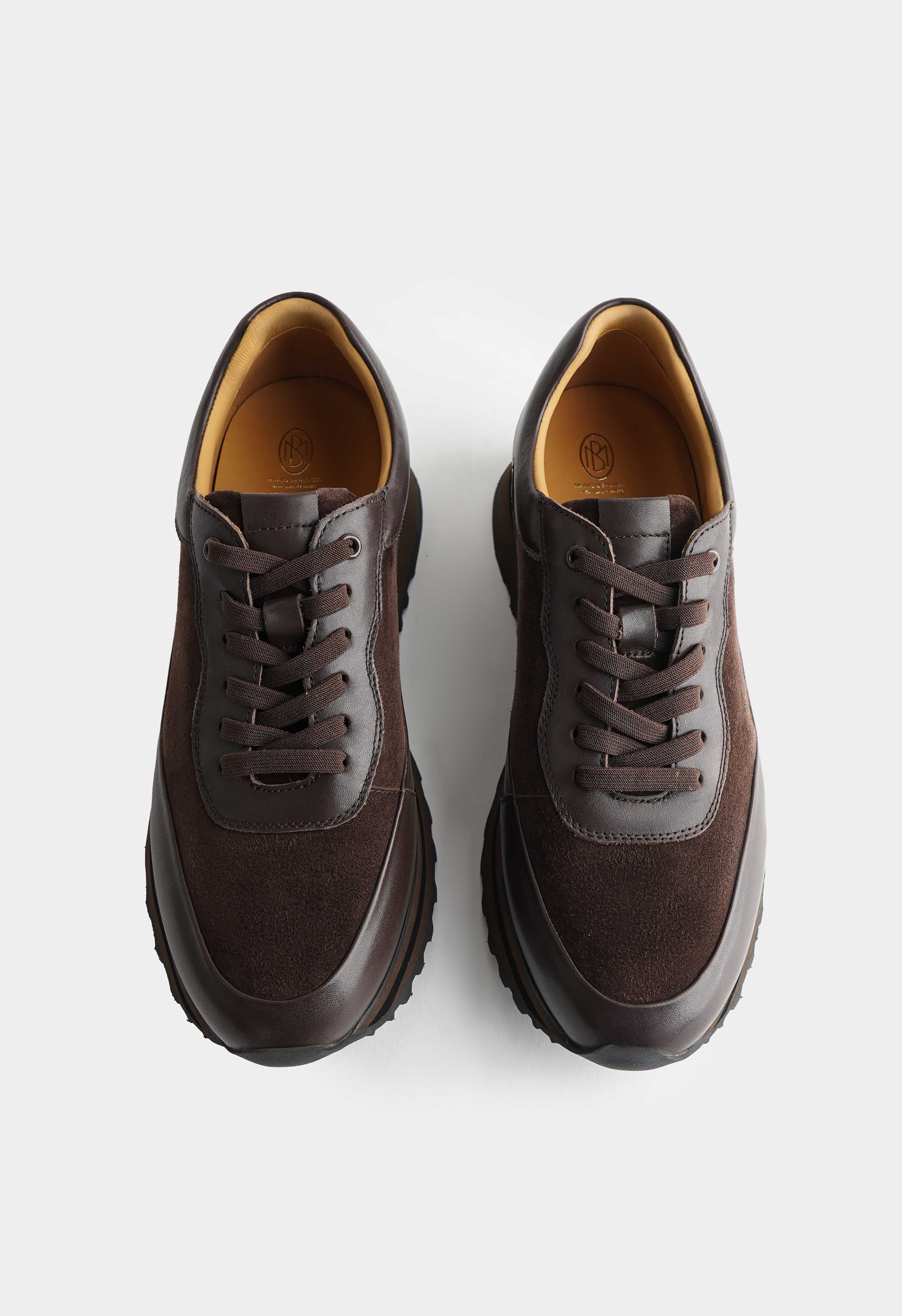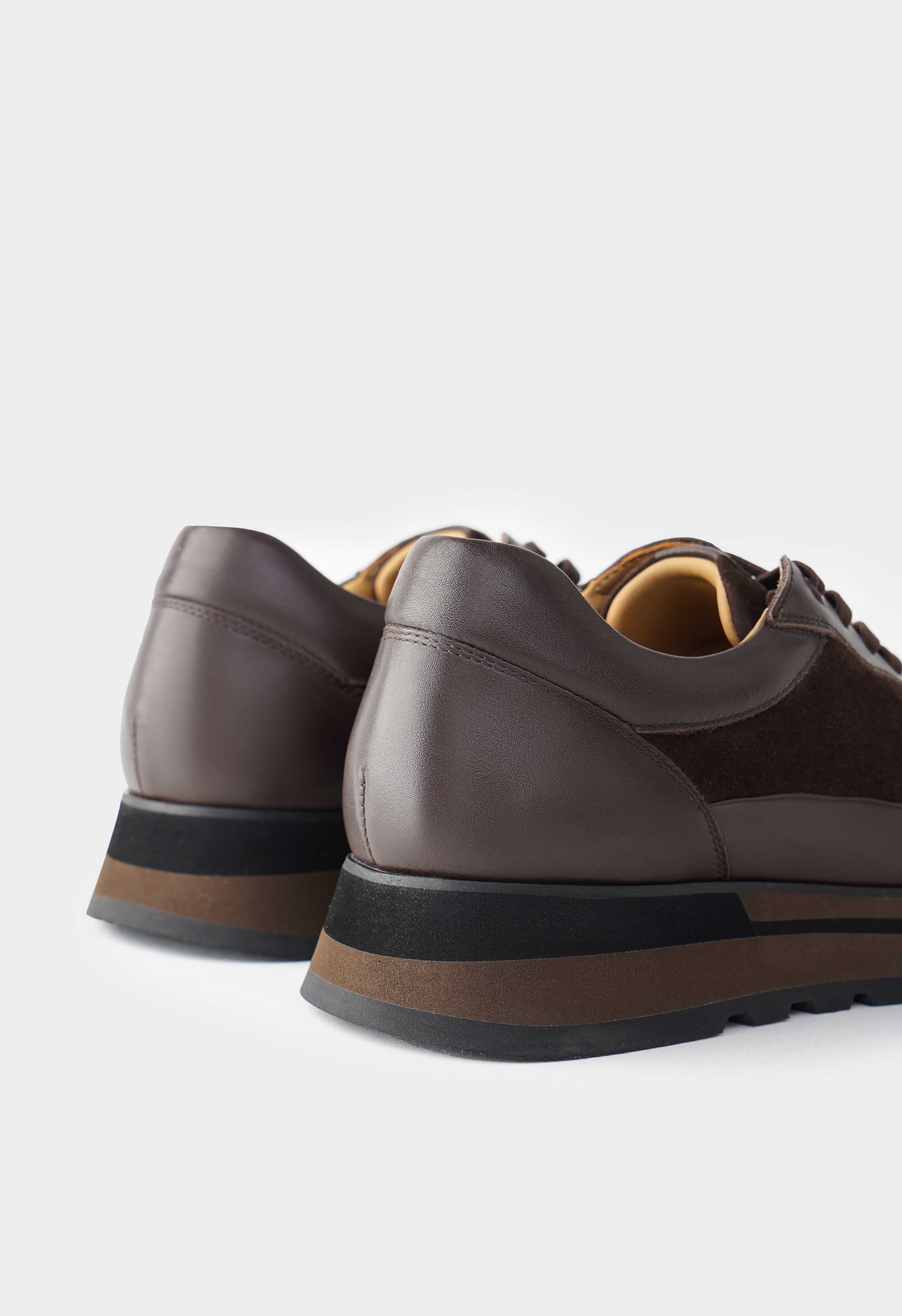 Коричневые кроссовки из натуральной кожи – практичная пара с собранным силуэтом и спокойным характером. Гладкая кожа выглядит аккуратно и долго сохраняет опрятный вид, а округлый мысок дает комфортную посадку на каждый день. Шнуровка помогает точно настроить фиксацию по стопе и делает силуэт более аккуратным. Платформа добавляет рост и визуально вытягивает фигуру, в то время как жесткая подошва обеспечивает стабильную опору и уверенный шаг.