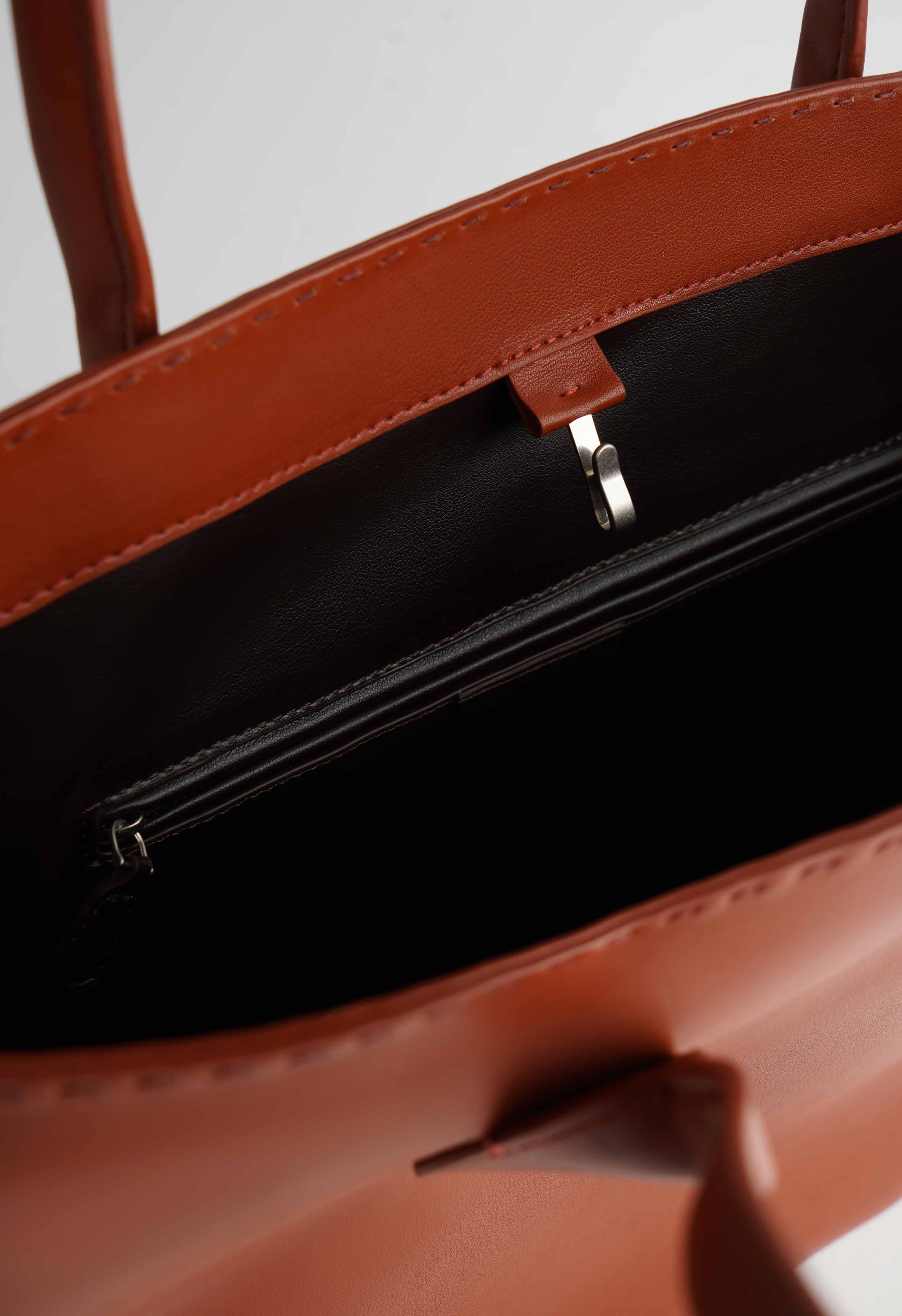 Яркая сумка в рыжем цвете из натуральной кожи выглядит благородно, добавляя образу акцент. Лаконичная форма и длинные удобные ручки делают модель универсальной для города, работы и поездок. Серебряная фурнитура и карабин смотрятся современно и подчеркивают базовый дизайн без лишнего декора. Внутри предусмотрены три кармана, чтобы легко разложить телефон, ключи, документы и мелочи по местам и поддерживать порядок каждый день.