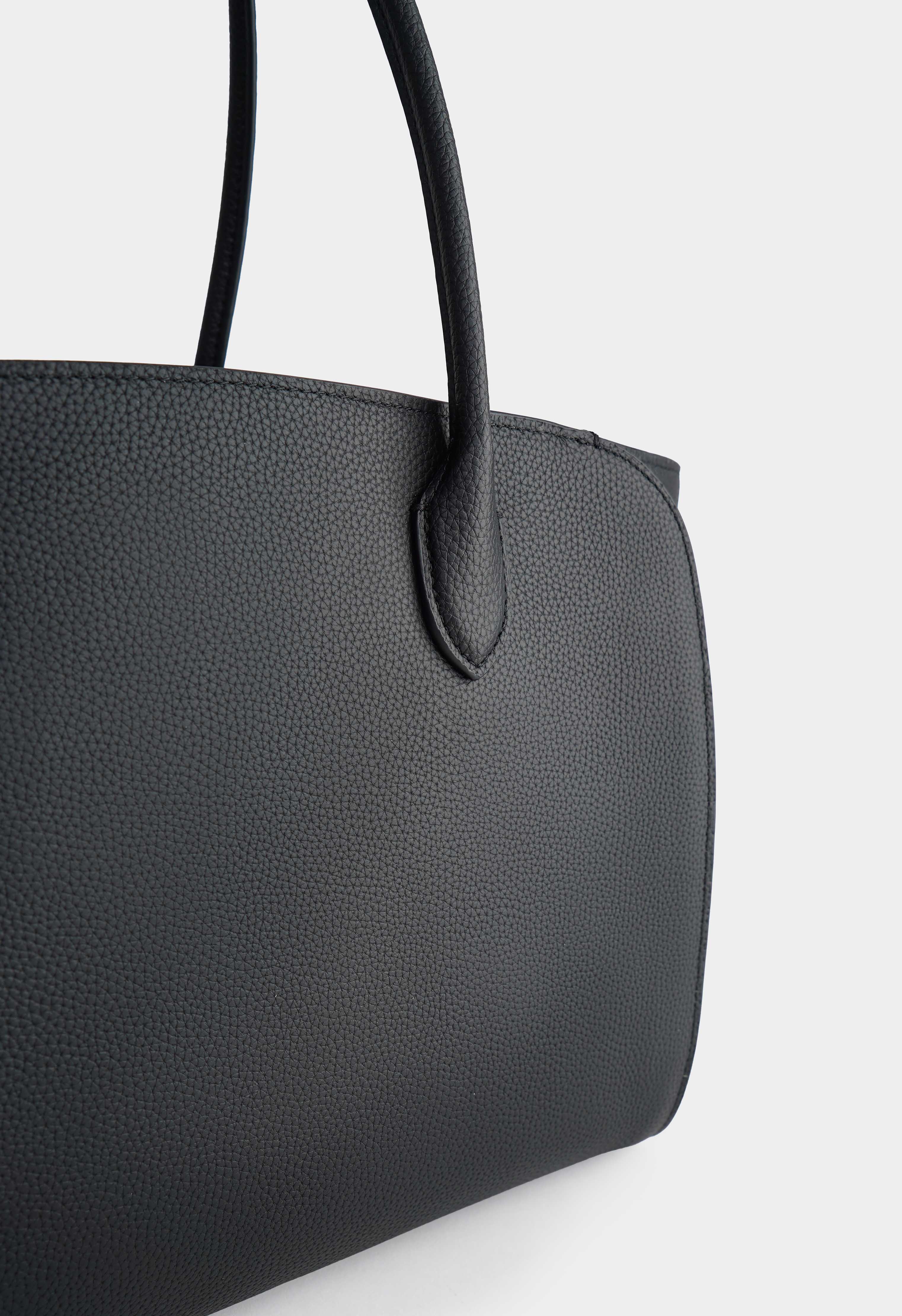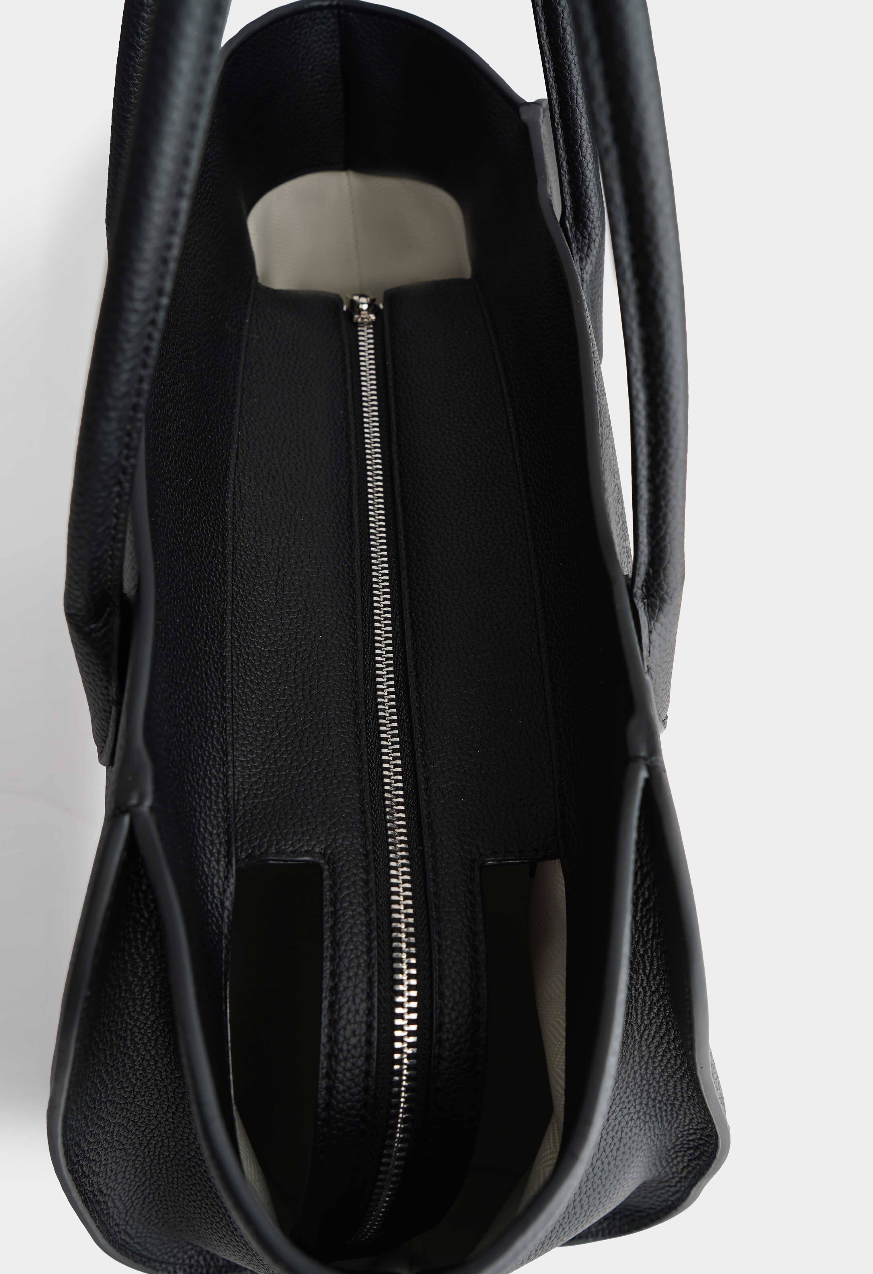 Минималистичная черная сумка из натуральной кожи – вместительная, аккуратная и универсальная для города и работы. Надежная молния защищает содержимое, а серебряная фурнитура добавляет стильный, свежий акцент. Внутри – три практичных кармана, чтобы удобно разложить необходимые мелочи и всегда держать порядок.