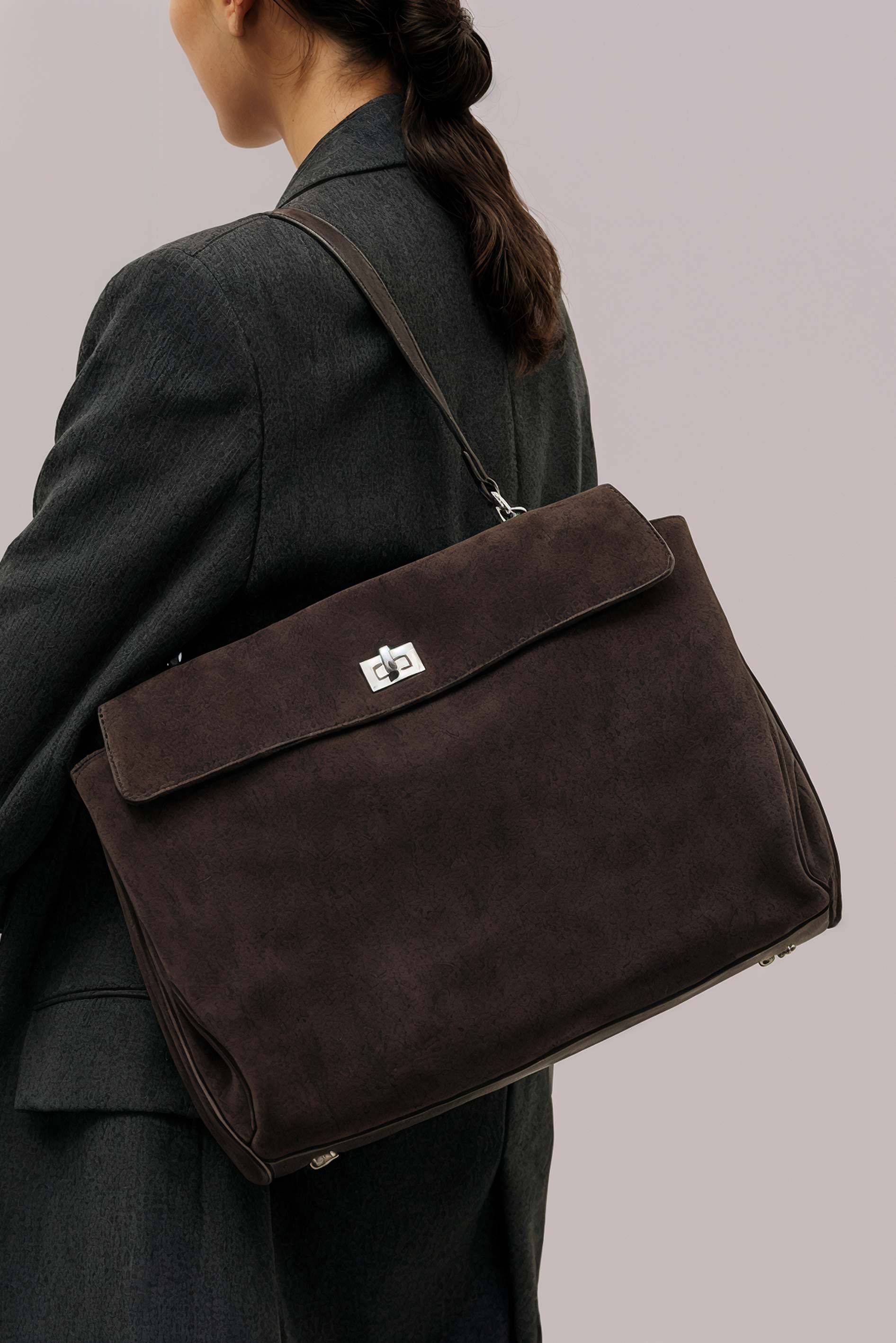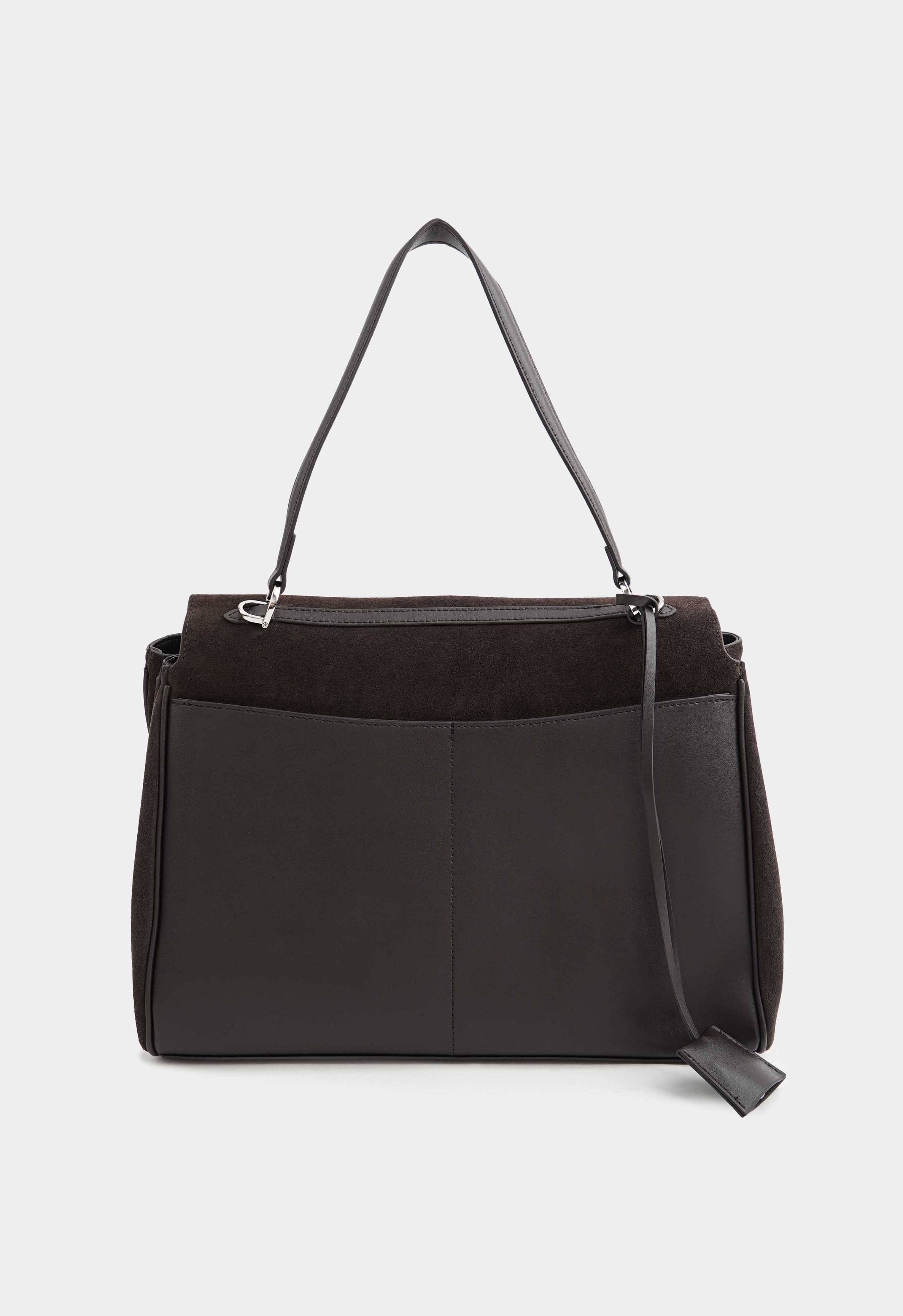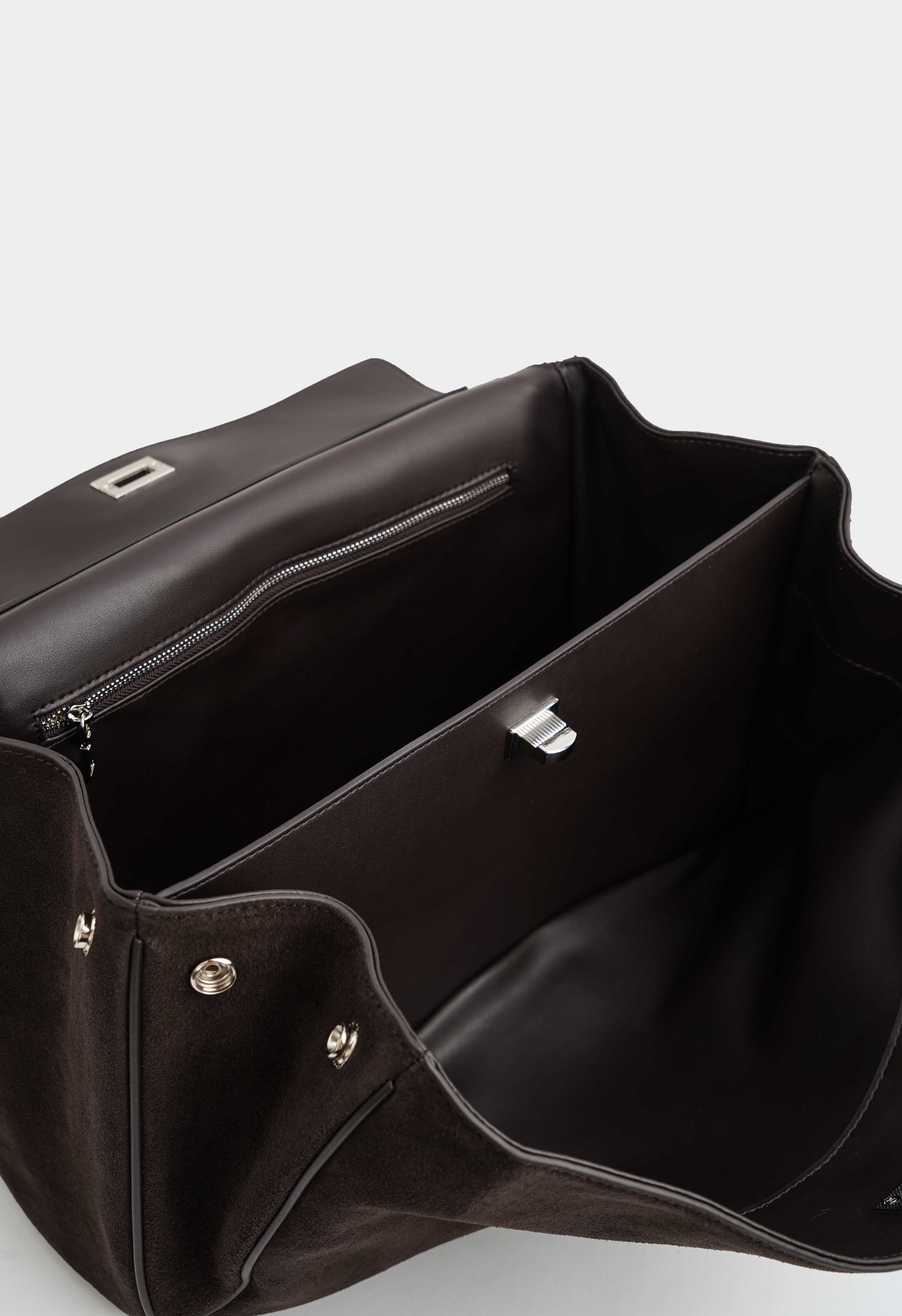 Эффектная сумка темно-коричневого цвета из натуральной замши – универсальный вариант на каждый день: в комплекте плечевой ремень для комфортной носки, а обвес из кожаной тесьмы добавляет аккуратную стильную деталь. Пряжка и серебряная фурнитура подчеркивают лаконичный дизайн, внутри предусмотрен один карман для мелочей, в то время как два внешних кармана помогают держать под рукой самое нужное.