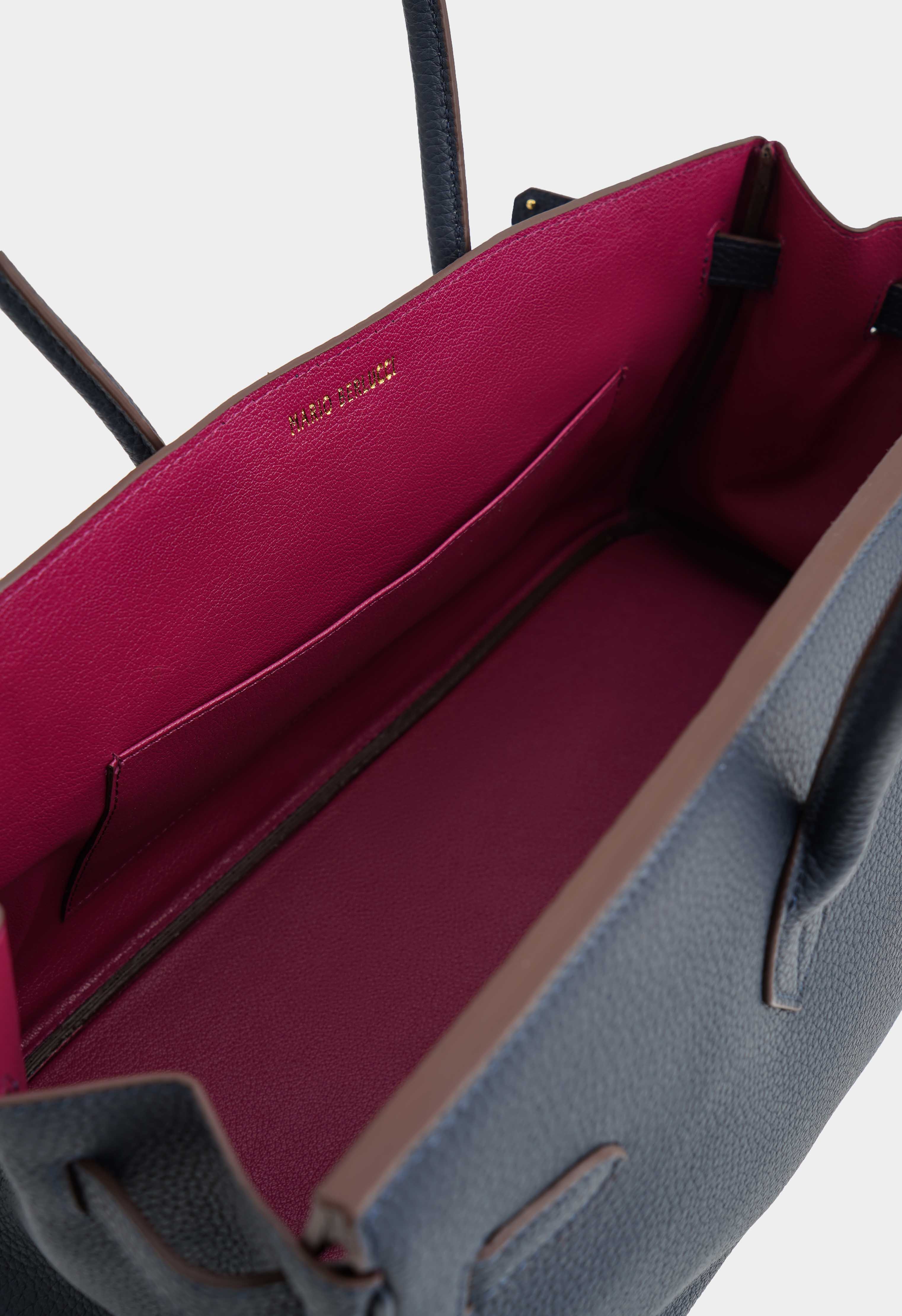Синяя сумка из натуральной кожи – эффектная классика с роскошным настроением: благородный цвет выигрышно подчеркивает золотую фурнитуру и аккуратную пряжку, а обвес из кожаной тесьмы с замочком и ключиком добавляет изюминку и делает модель запоминающейся. Внутри расположены два кармана для удобной организации мелочей, чтобы всё важное всегда было на месте, а ваш образ выглядел собранно и элегантно.