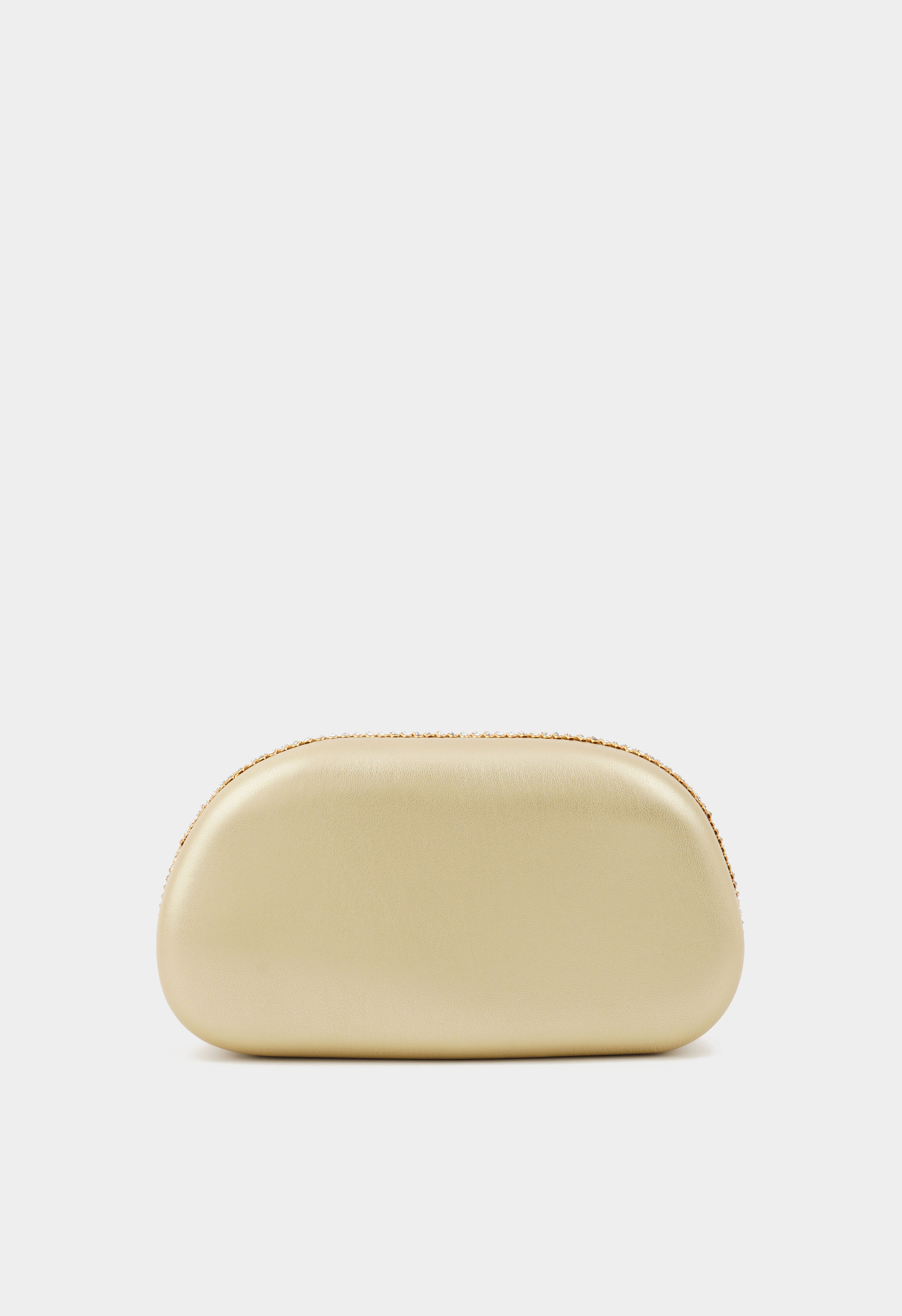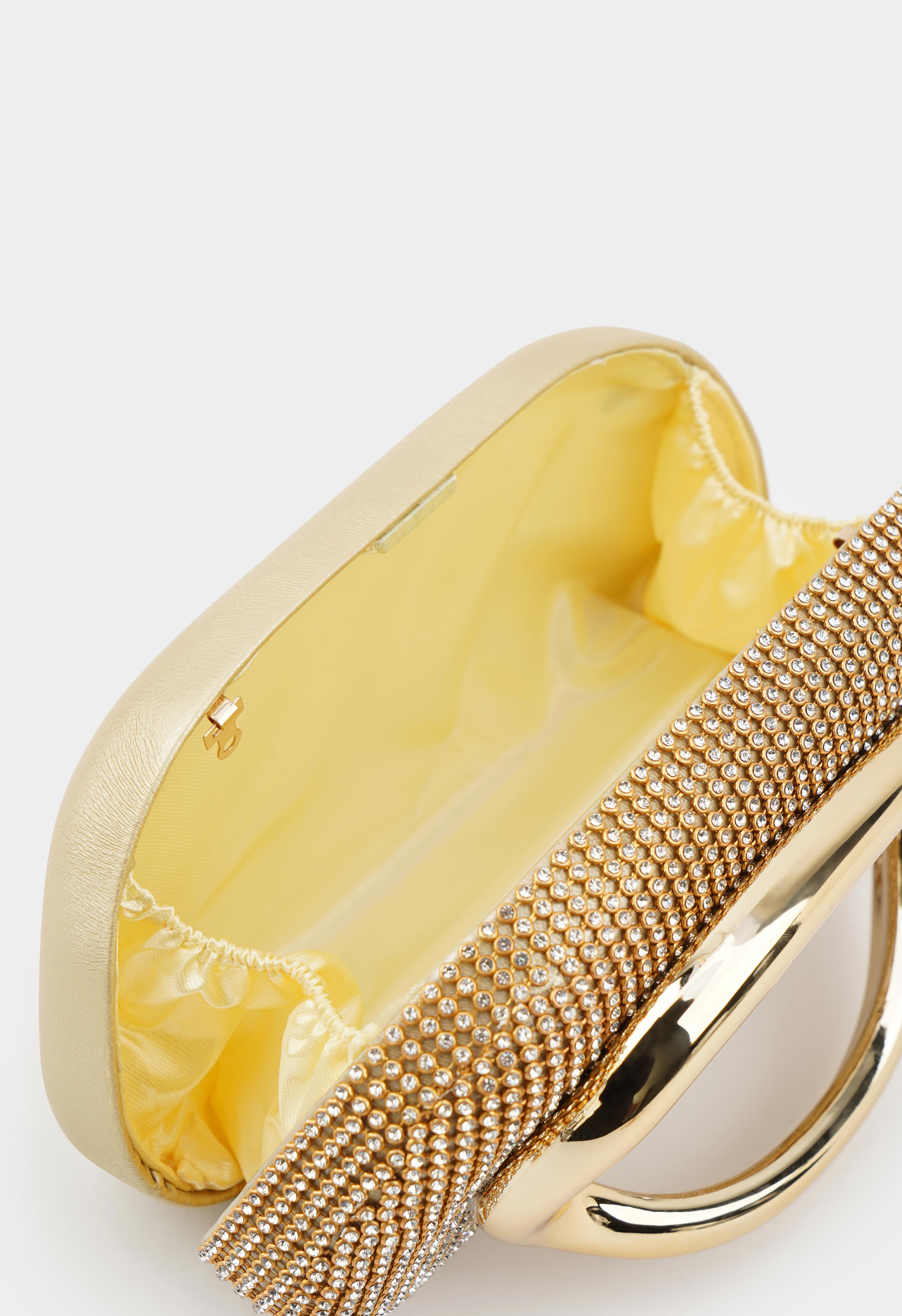 Сияющий золотистый клатч со стразами и эффектной зеркальной ручкой-скобой – тот самый акцент, который мгновенно делает образ праздничным: переливы красиво ловят свет, гладкая золотая фурнитура добавляет современный вид, а удобная форма комфортно лежит в руке и притягивает взгляды. Внутри аккуратная подкладка и достаточно места для самых нужных мелочей, при этом клатч держит форму и позволяет выглядеть безупречно весь вечер. В комплекте идет удобная съемная цепочка, чтобы можно было носить клатч разными способами.