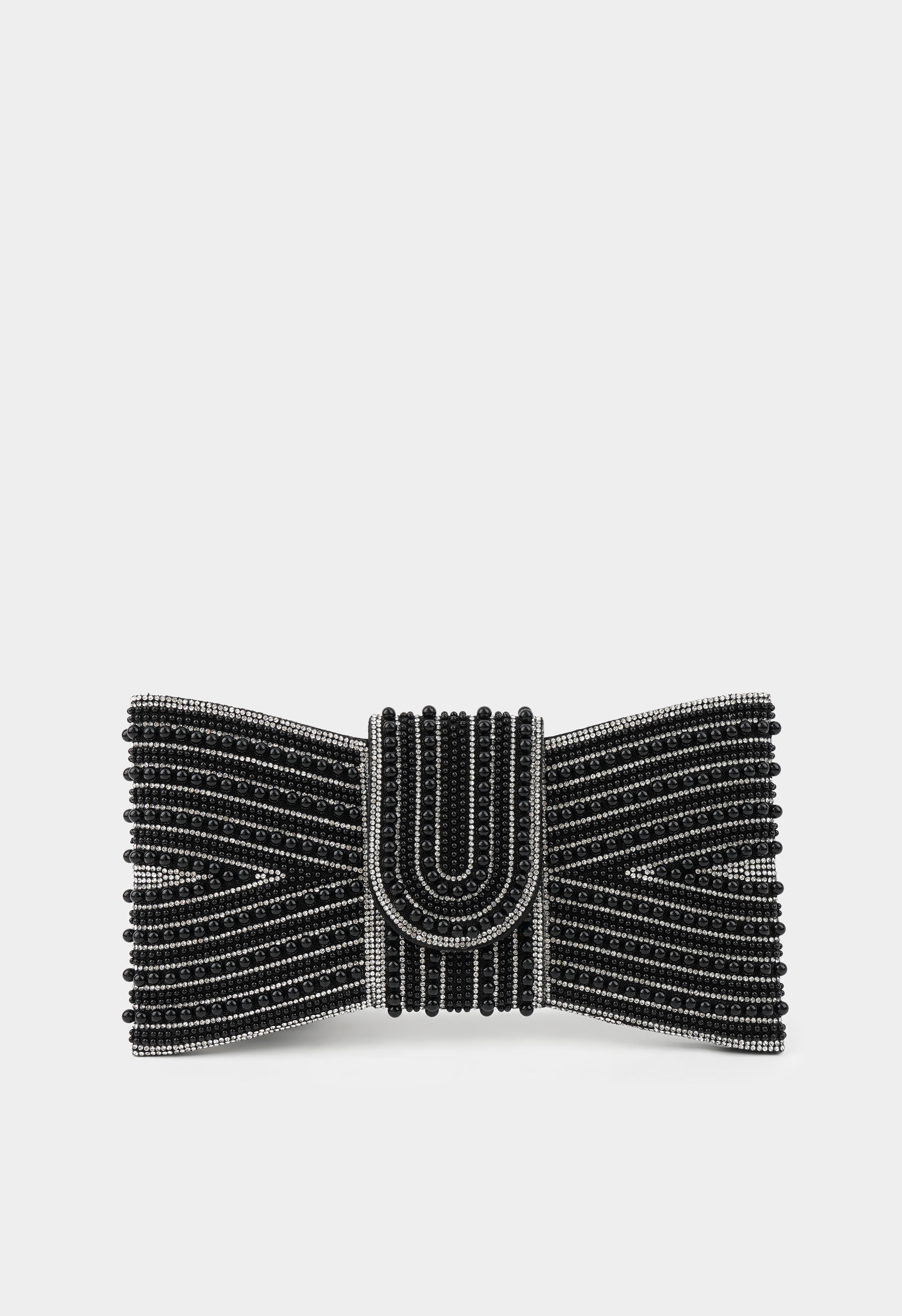 Черный клатч в форме эффектного банта – ваш готовый акцент для вечера: текстильная основа украшена декоративными темными бусинами и сияющими стразами, которые красиво переливаются при каждом движении и мгновенно притягивают взгляды. Удобная застежка на кнопке надежно фиксирует содержимое, а цепочка в комплекте позволяет носить клатч через плечо, оставляя руки свободными.