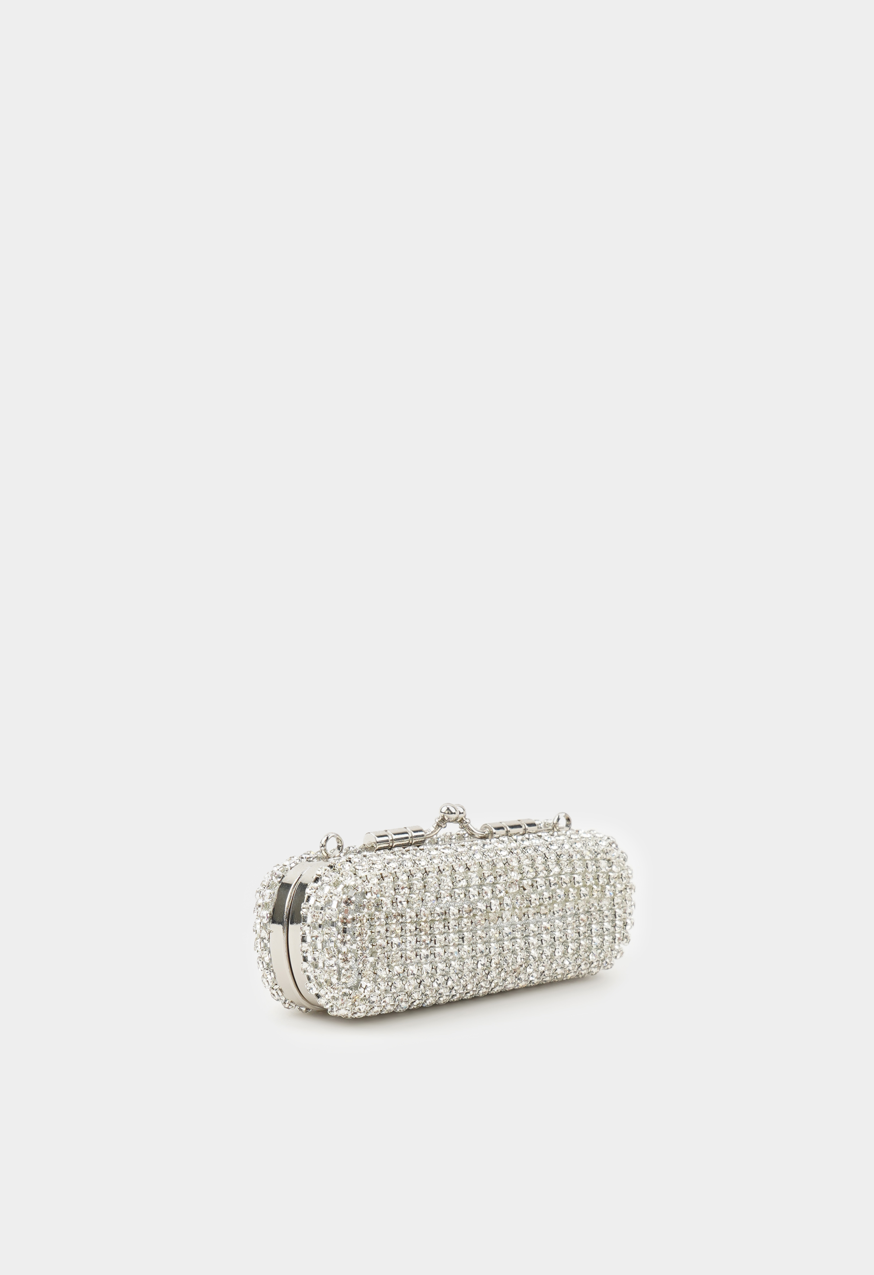 Роскошный клатч, полностью усыпанный сияющими стразами, создан для тех случаев, когда хочется блистать: он эффектно переливается при любом свете и моментально превращает даже самый лаконичный образ в вечерний. Жесткая форма держит идеальный вид, а защелкивающаяся застежка сохраняет содержимое в безопасности. В комплекте есть серебряная цепочка, чтобы вы могли носить клатч на плече или в руках, оставаясь свободной и уверенной весь вечер.