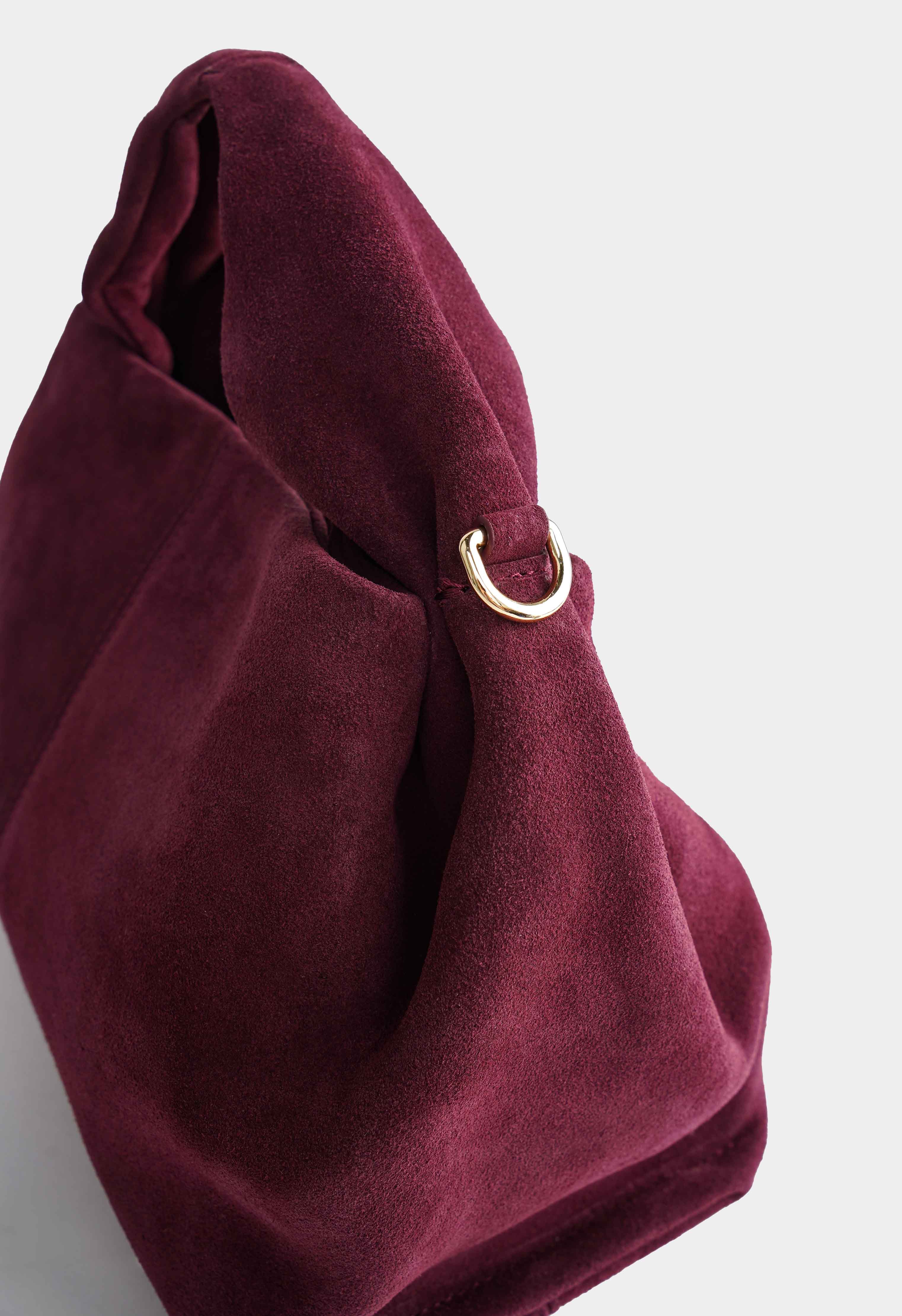 Стильная сумка из натуральной замши в приятном бордовом оттенке – идеальное сочетание элегантности и практичности. Компактный размер позволяет брать с собой только самое необходимое, а один внутренний карман помогает держать порядок. Практичная кнопка и золотая фурнитура придают сумке изысканный и современный вид, в то время как плечевой ремень обеспечивает удобство и комфорт в носке. Универсальная и выразительная модель легко вписывается как в повседневные, так и в праздничные образы, добавляя вашему стилю особую нотку утонченности и уверенности.